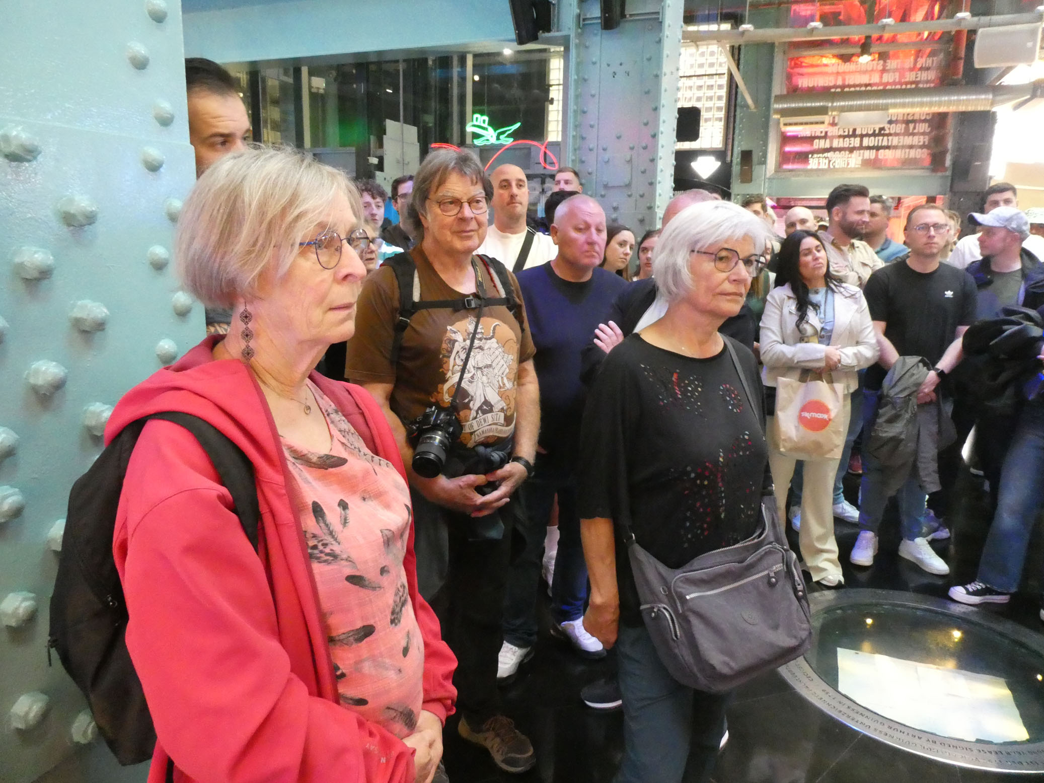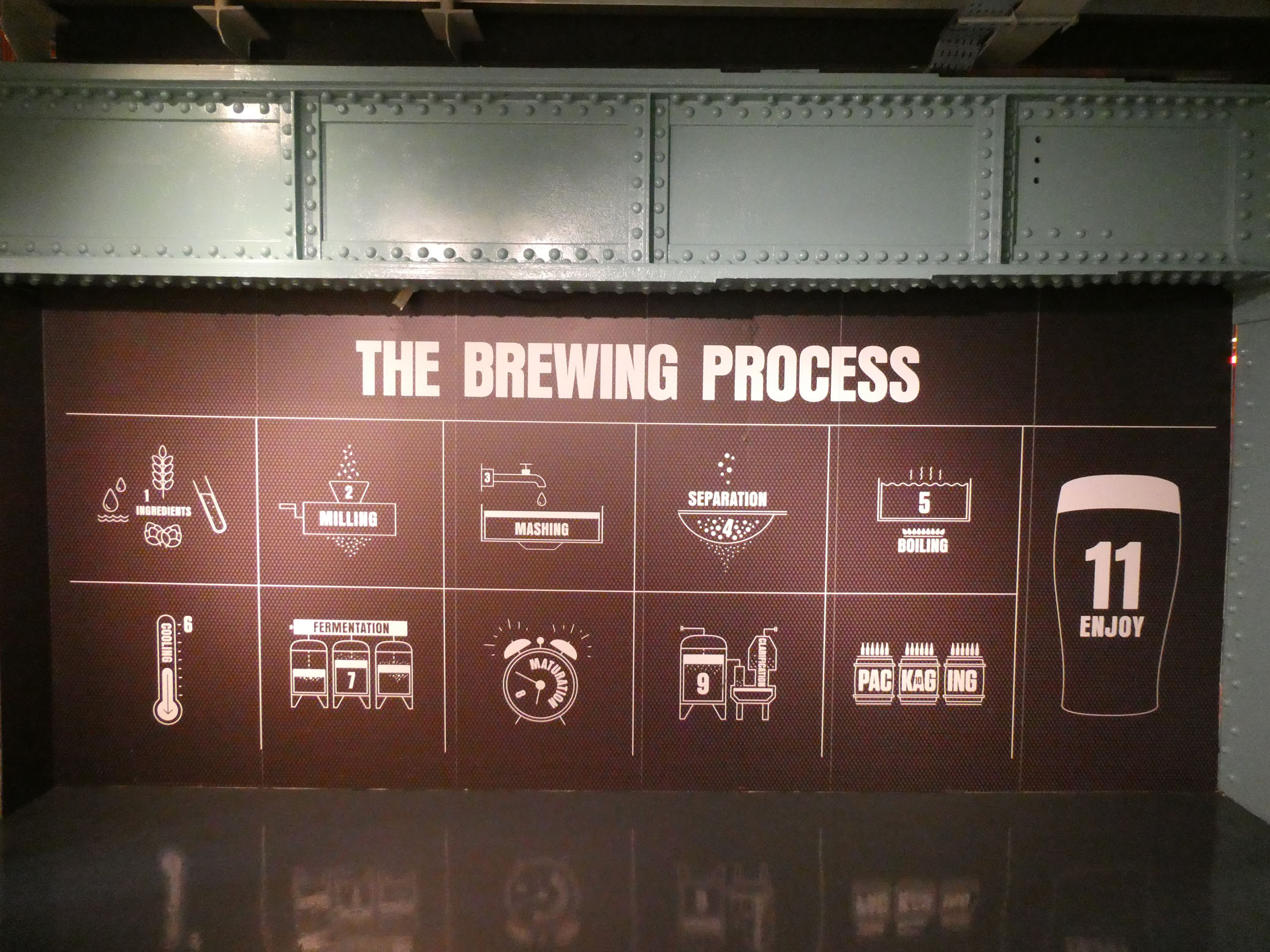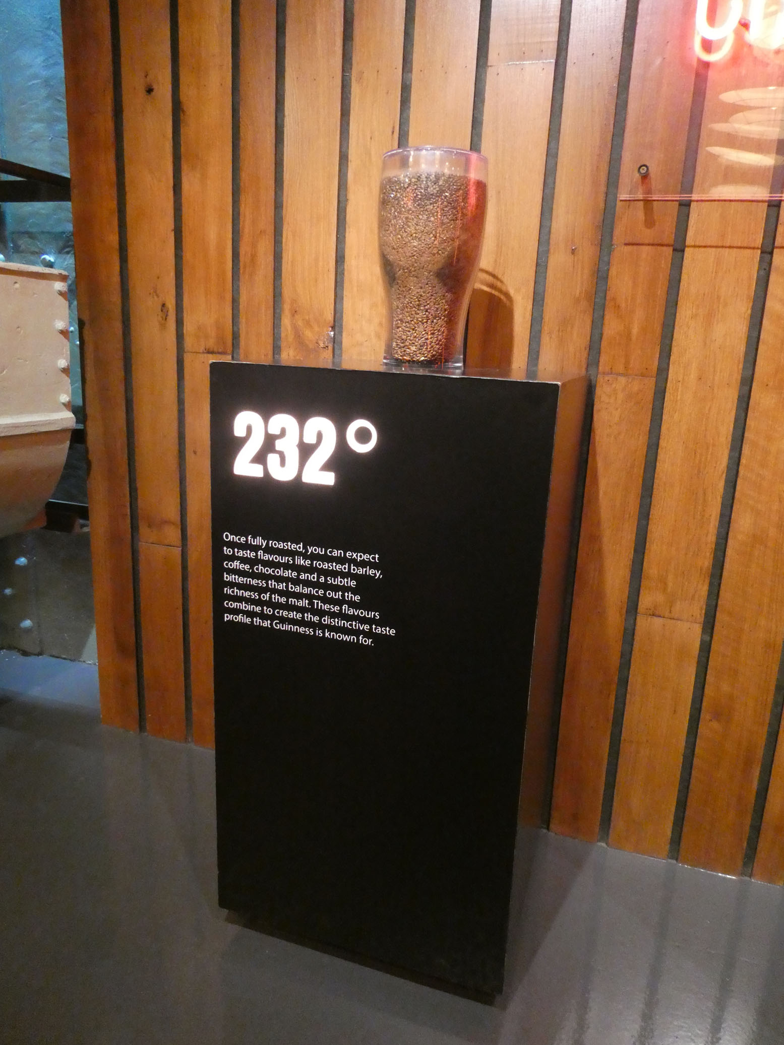 Puis direction la Guinness Storehouse Experience. Vous vous en doutez, il s’agit d’une exposition à la gloire de la célèbre marque de bière. Le prix du billet comprend la dégustation d’une pinte de bière, que nous avons bien appréciée (Marie-Christine a pris un soda !).