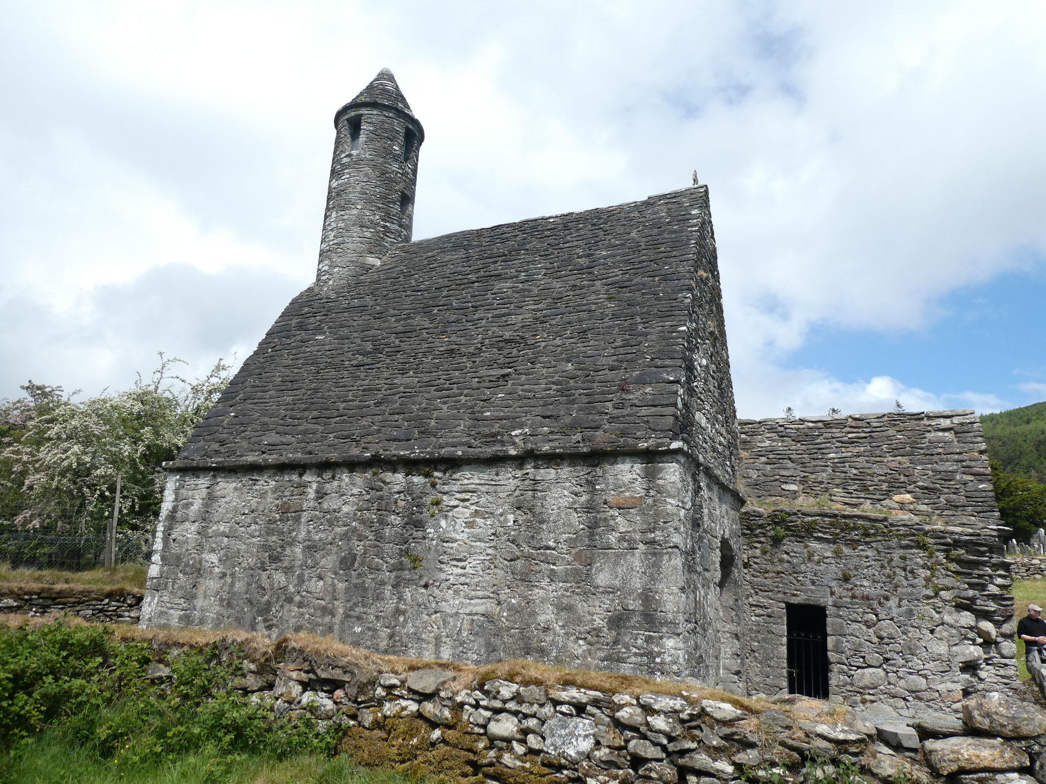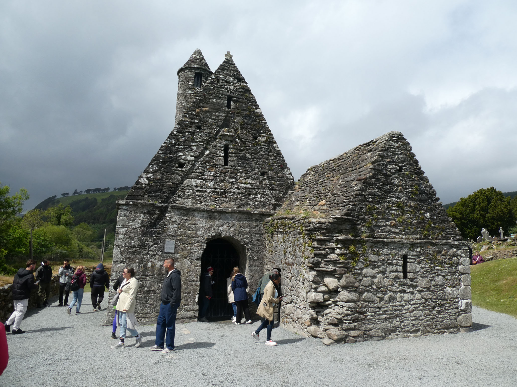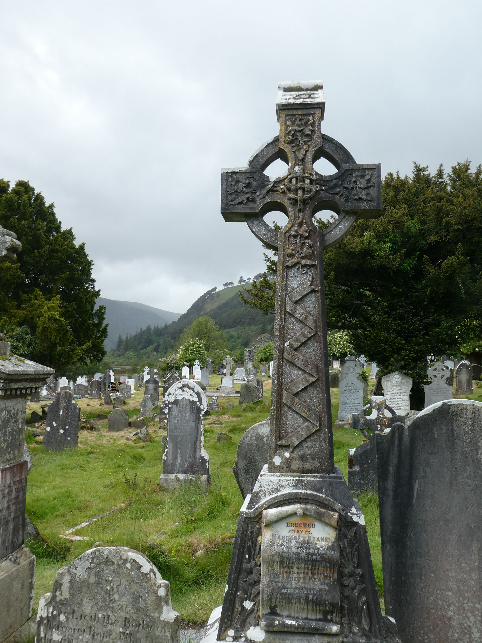 Puis direction Glendalough. C’est le site d’une cité monastique créée au VIe siècle par l’ermite St Kevin au bord d’un lac. Il en subsiste une tour ronde, tour-clocher de 30 mètres qui pouvait servir de refuge à la communauté en cas d’attaque. Également les ruines de la cathédrale, une petite église et un cimetière.