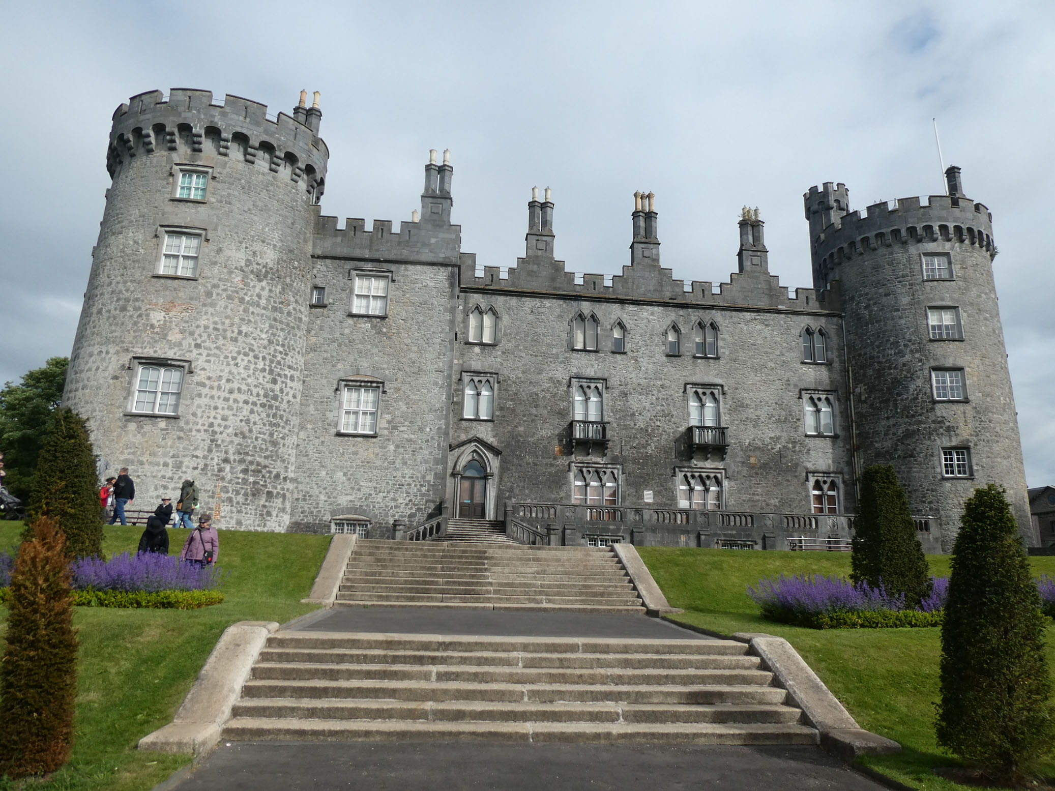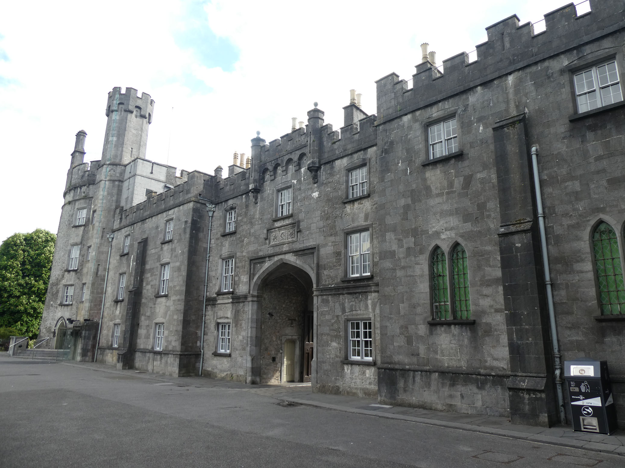 Le château de Kilkenny est bâti sur l’emplacement d’un ancien fort en bois commencé en 1172 ; il a été remplacé par un château en pierre, puis très remanié et agrandi au fil des siècles jusqu’au XIXe.