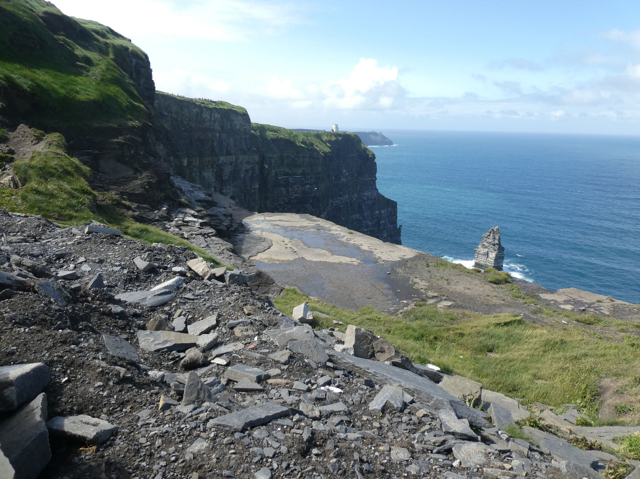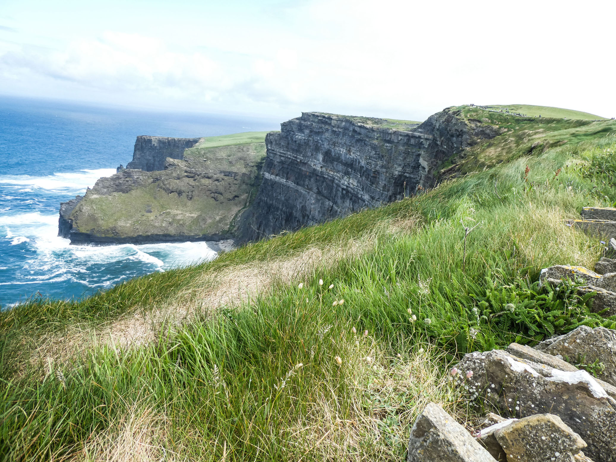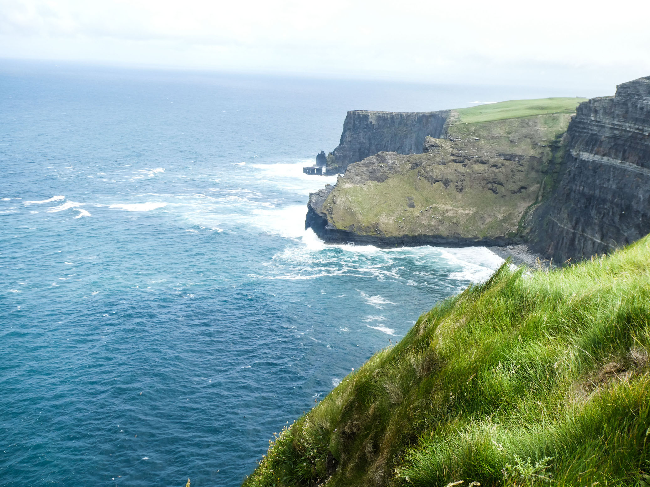 Les falaises de Moher sont un des lieux les plus visités d’Irlande. On n’était donc pas tout seuls. Le temps nous a été (relativement) clément avec des passages nuageux, un peu de brume, mais de belles éclaircies. On a donc bien vu les falaises, en s’accrochant bien à cause du vent. Heureusement tout est hyper-sécurisé. Très beaux panoramas qui compensent largement le Visitor Center un peu léger.