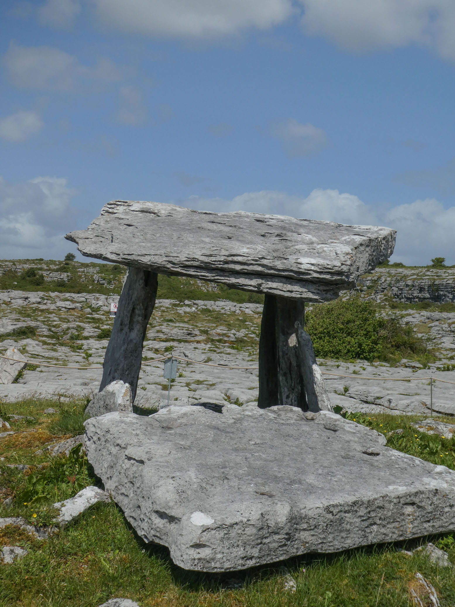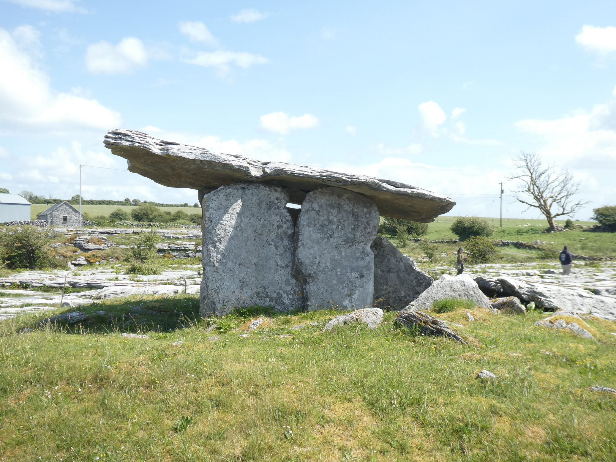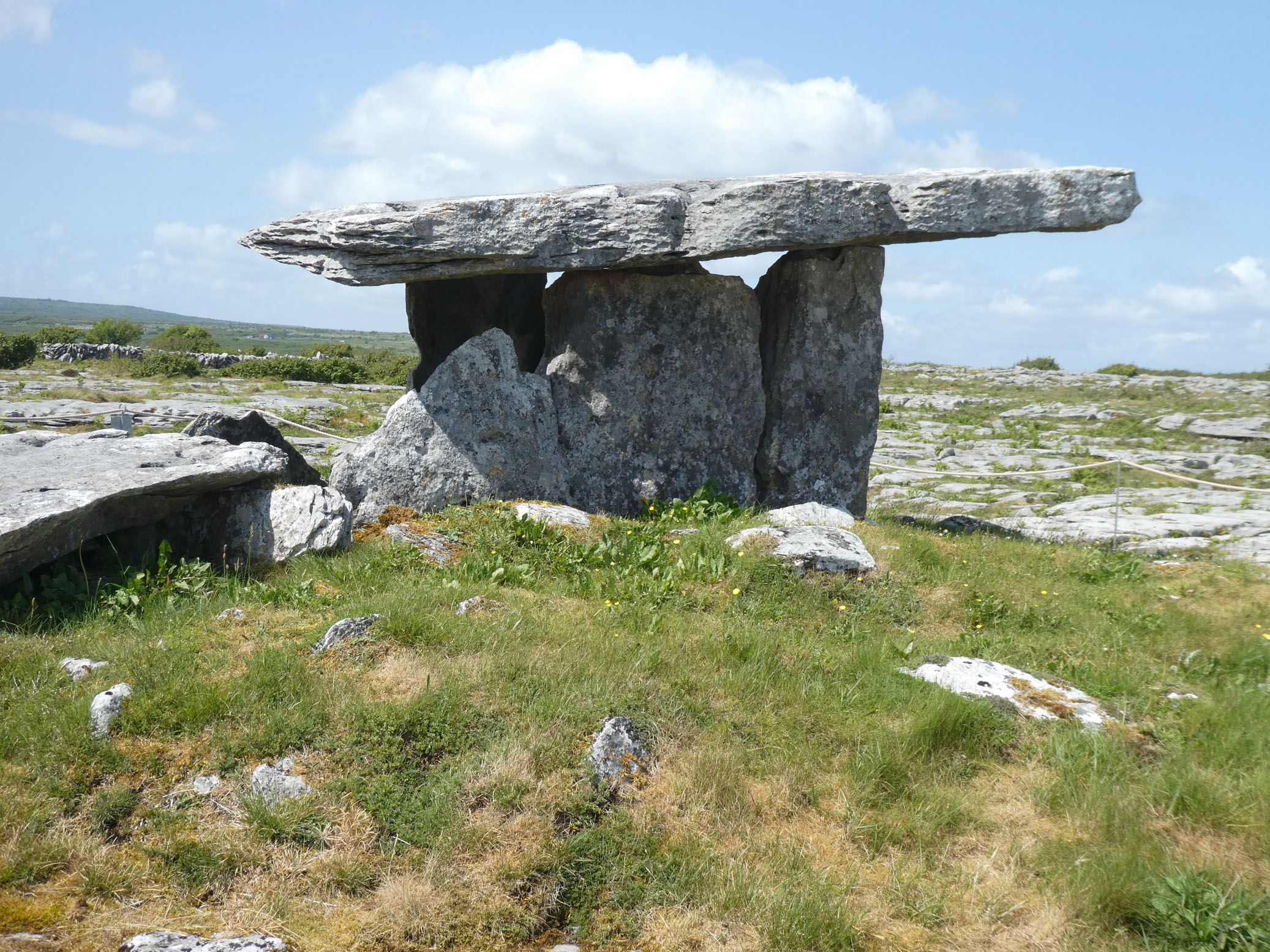 Le dolmen de Poulnabrone date de 6000 ans. Il est posté dans un site minéral assez spectaculaire.