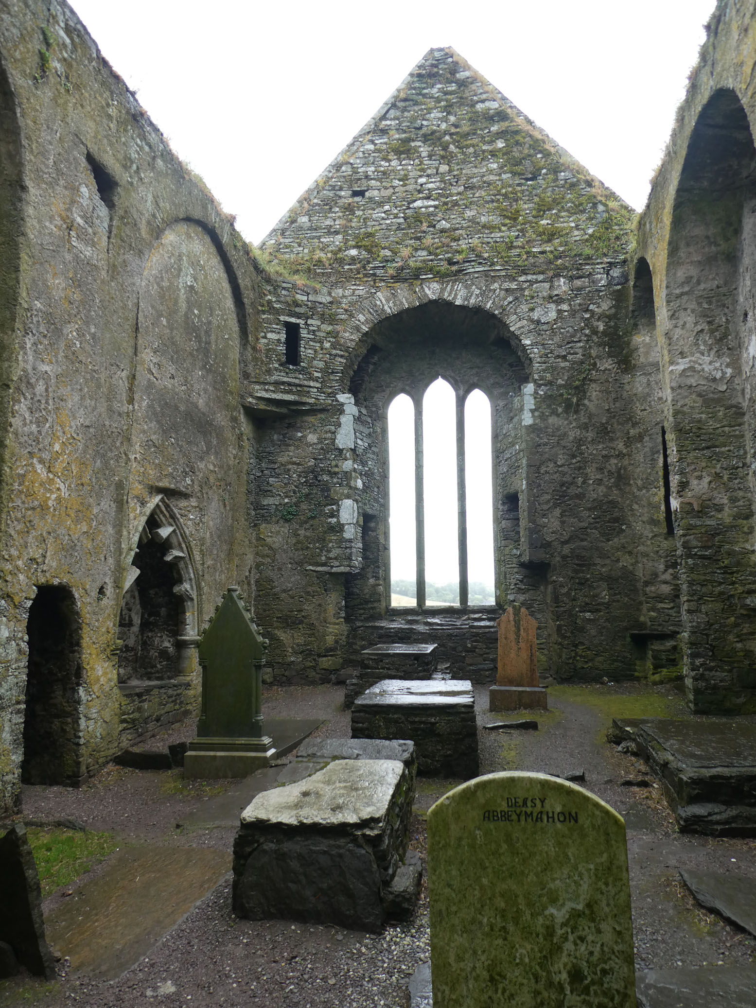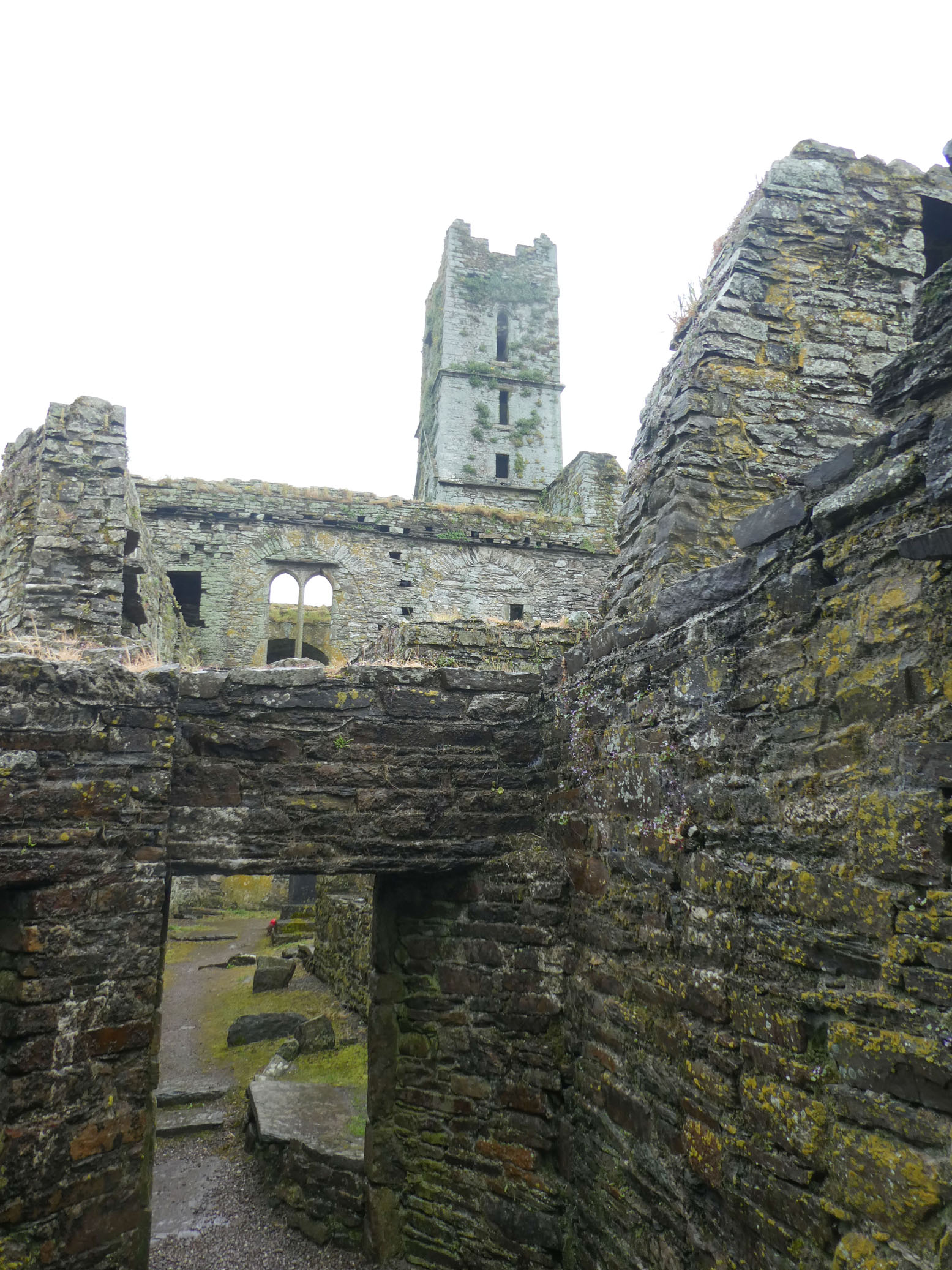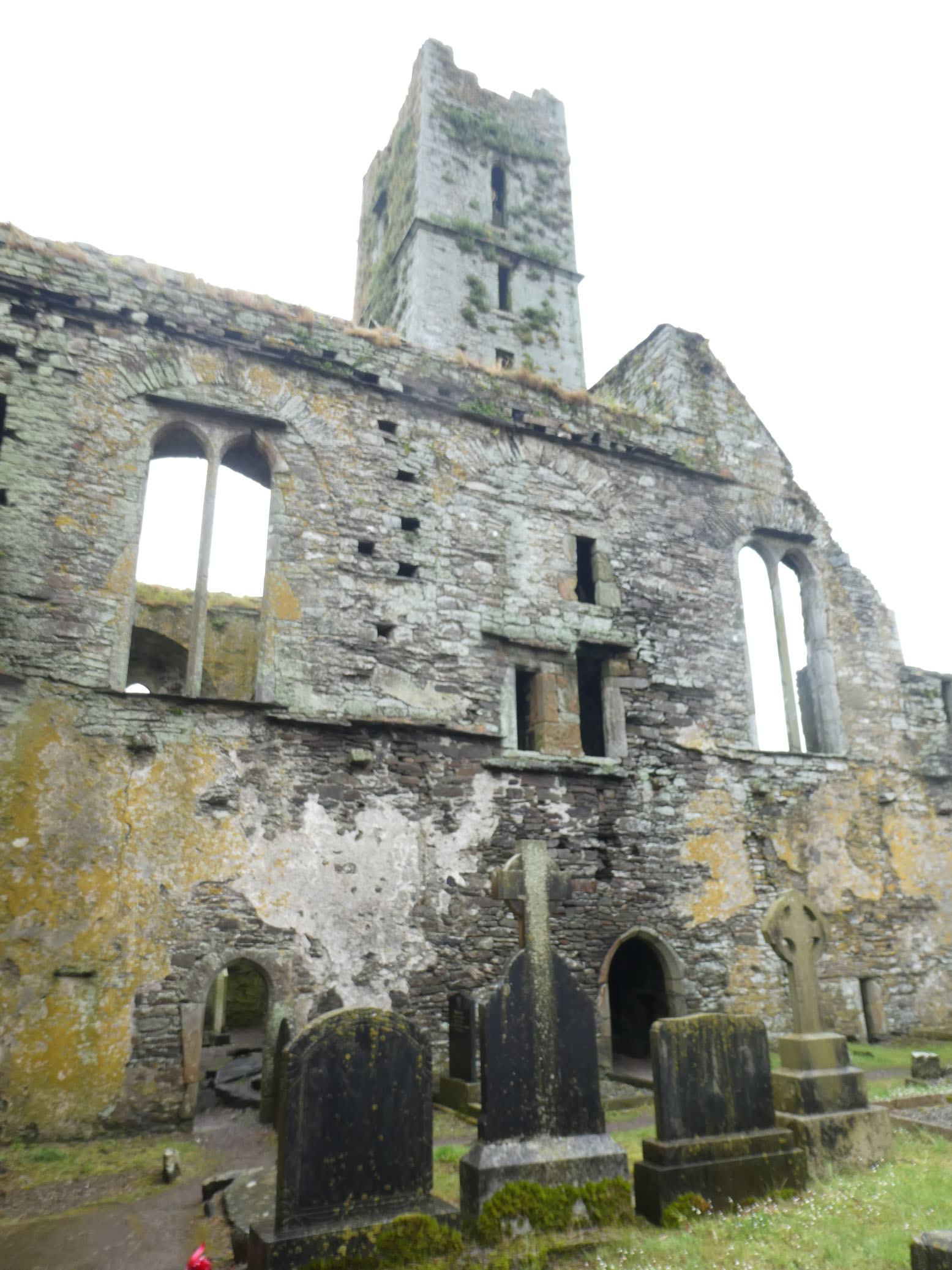 À Ballydehob, il y a une abbaye en ruine colonisée par le cimetière. Ce n’était pas prévu, on s’y balade gratuitement et c’était bien agréable (malgré le temps).