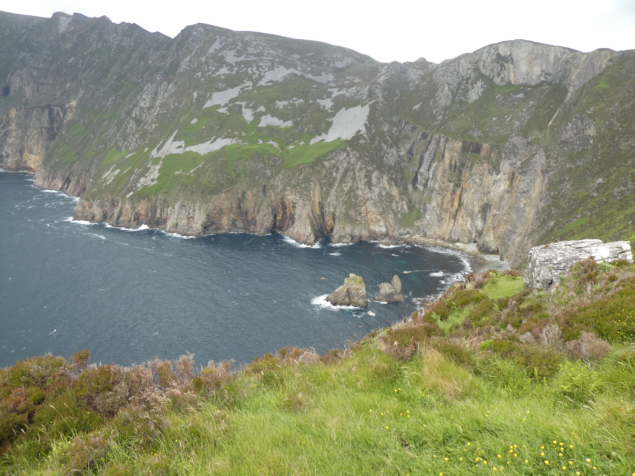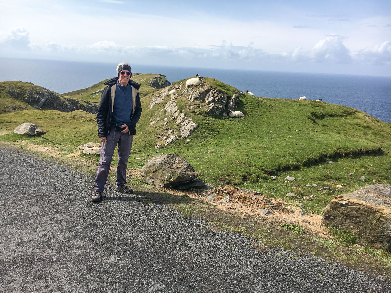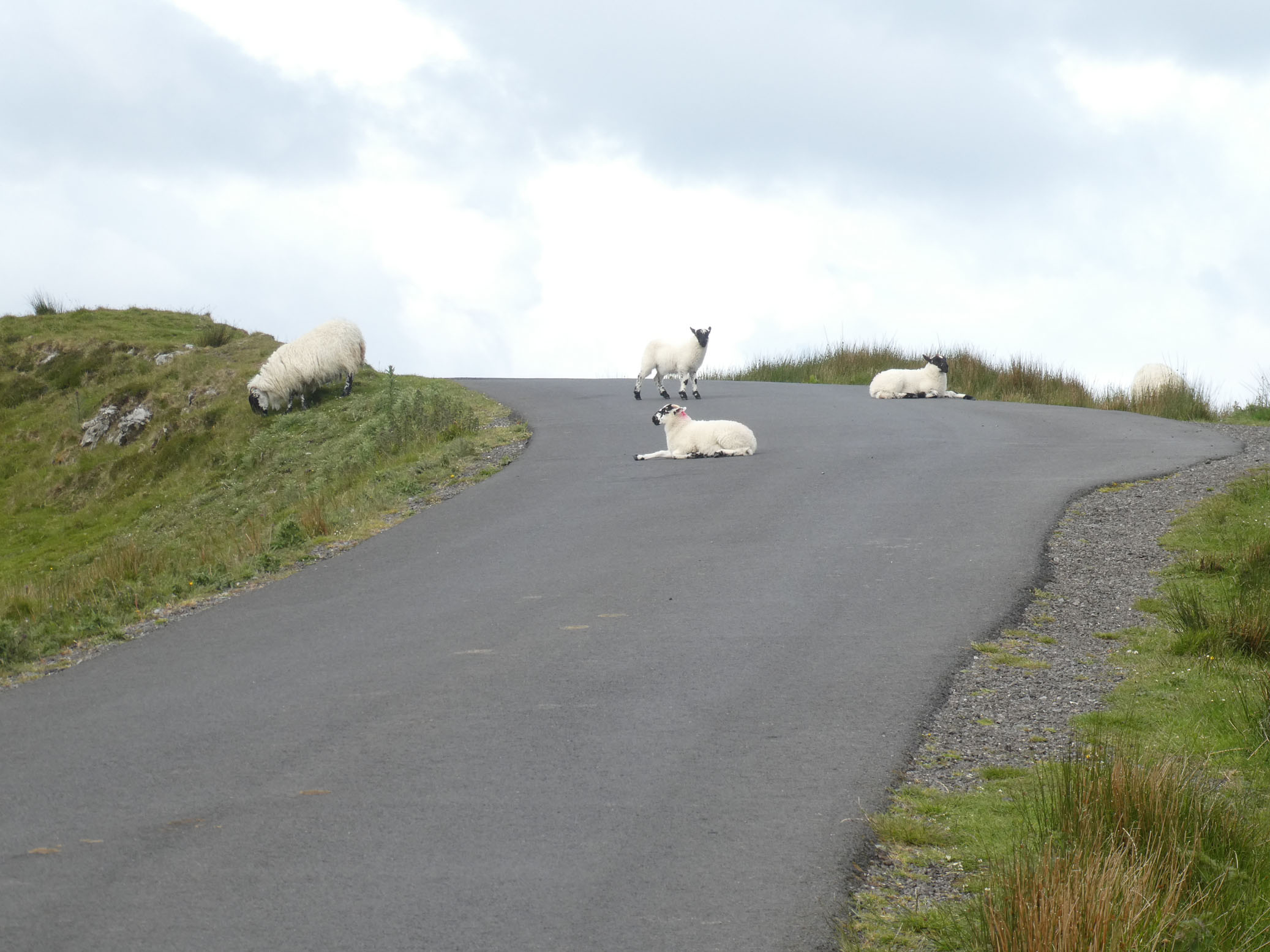 On commence la journée par les falaises de Slieve League, qui comptent parmi les plus hautes d’Europe. Quelques kilomètres de marche pour se mettre en train. Quelques gouttes de pluie pour nous rafraichir, s’il en était besoin. Quelques magnifiques vues et quelques moutons.