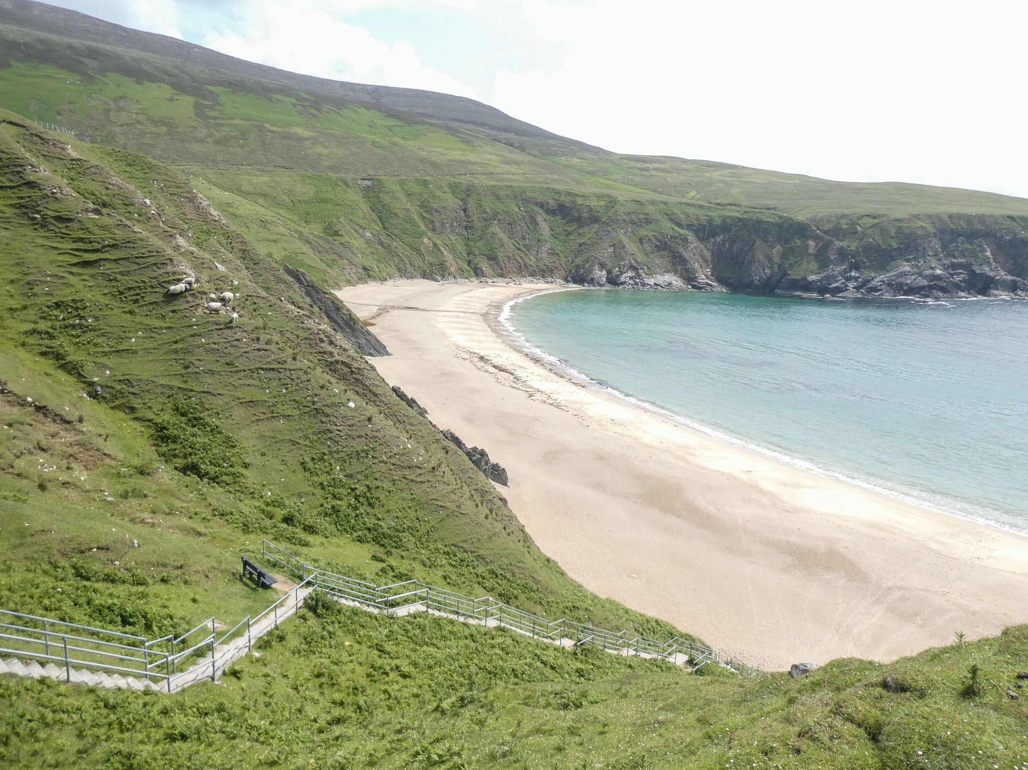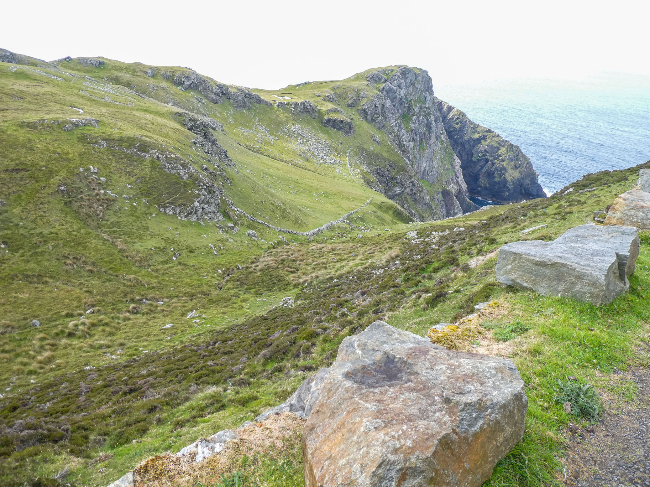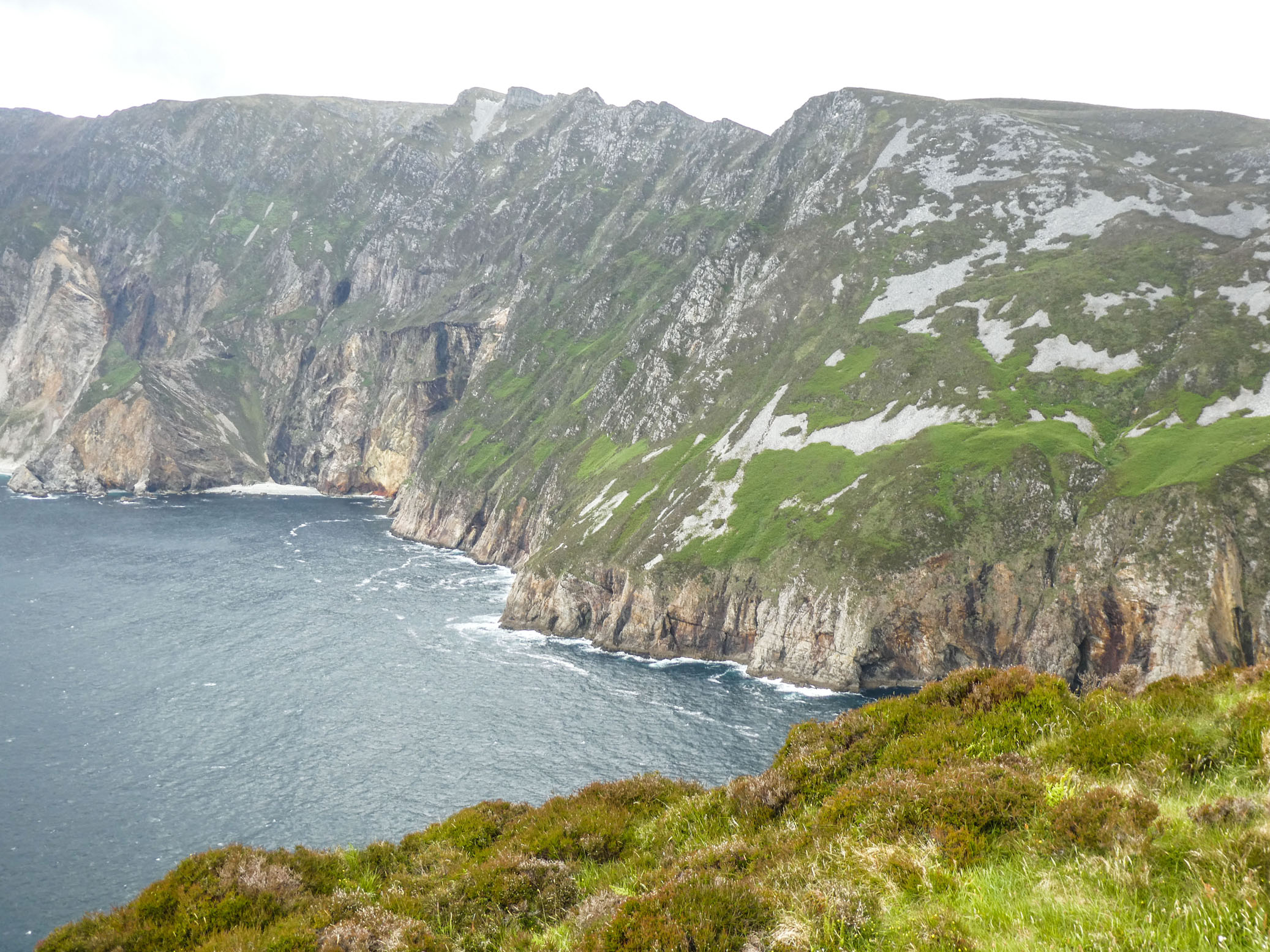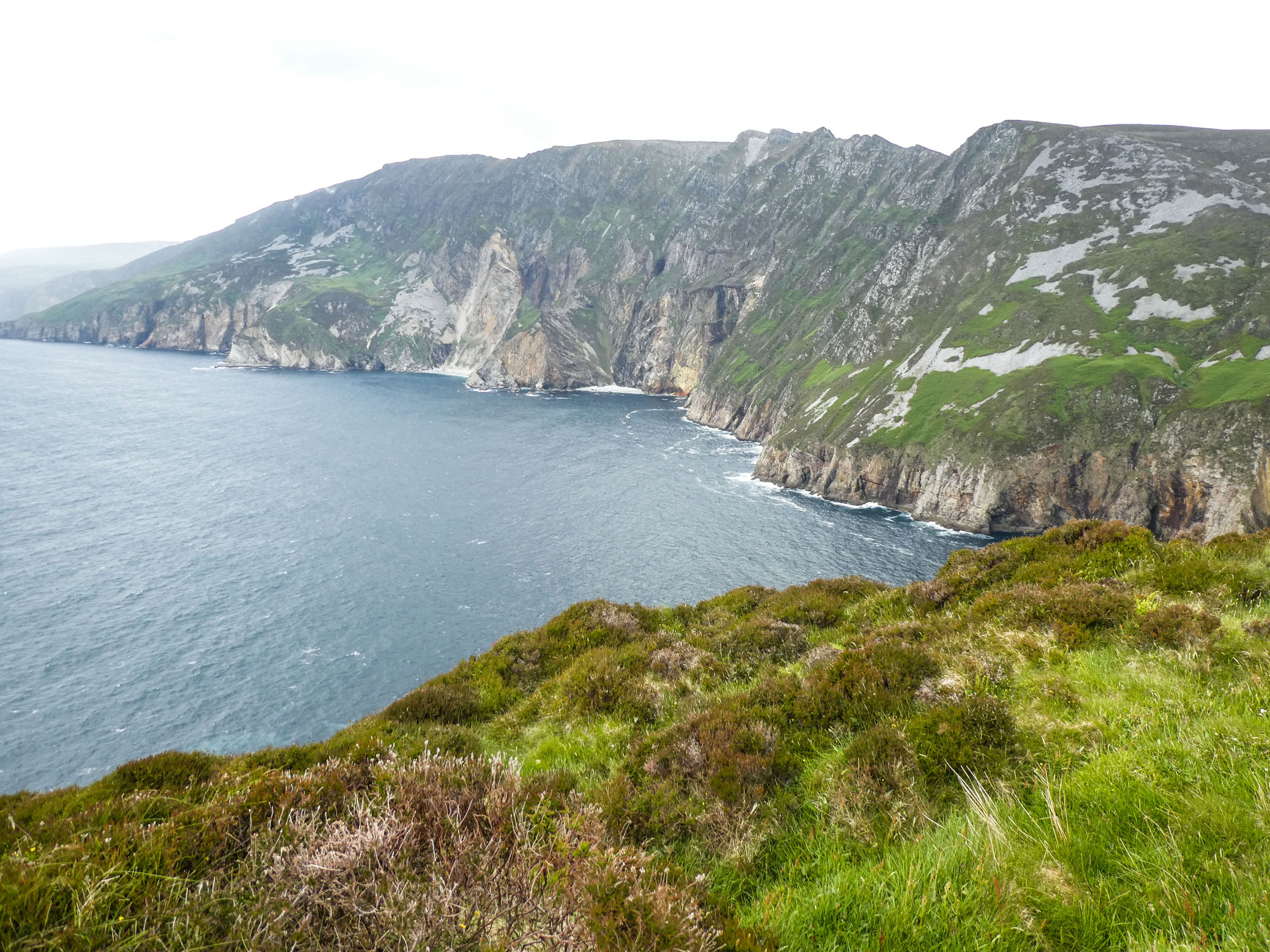 On commence la journée par les falaises de Slieve League, qui comptent parmi les plus hautes d’Europe. Quelques kilomètres de marche pour se mettre en train. Quelques gouttes de pluie pour nous rafraichir, s’il en était besoin. Quelques magnifiques vues et quelques moutons.