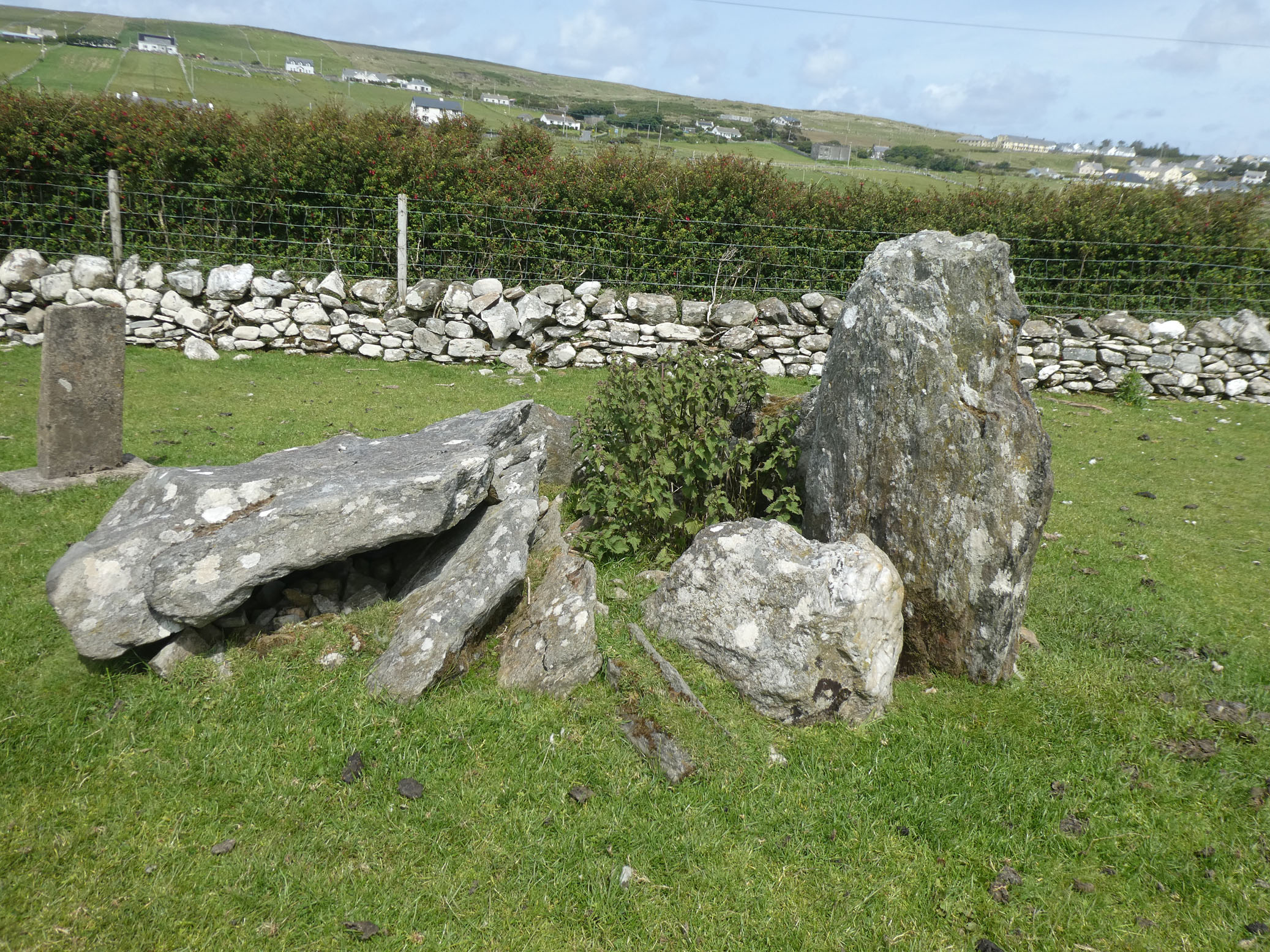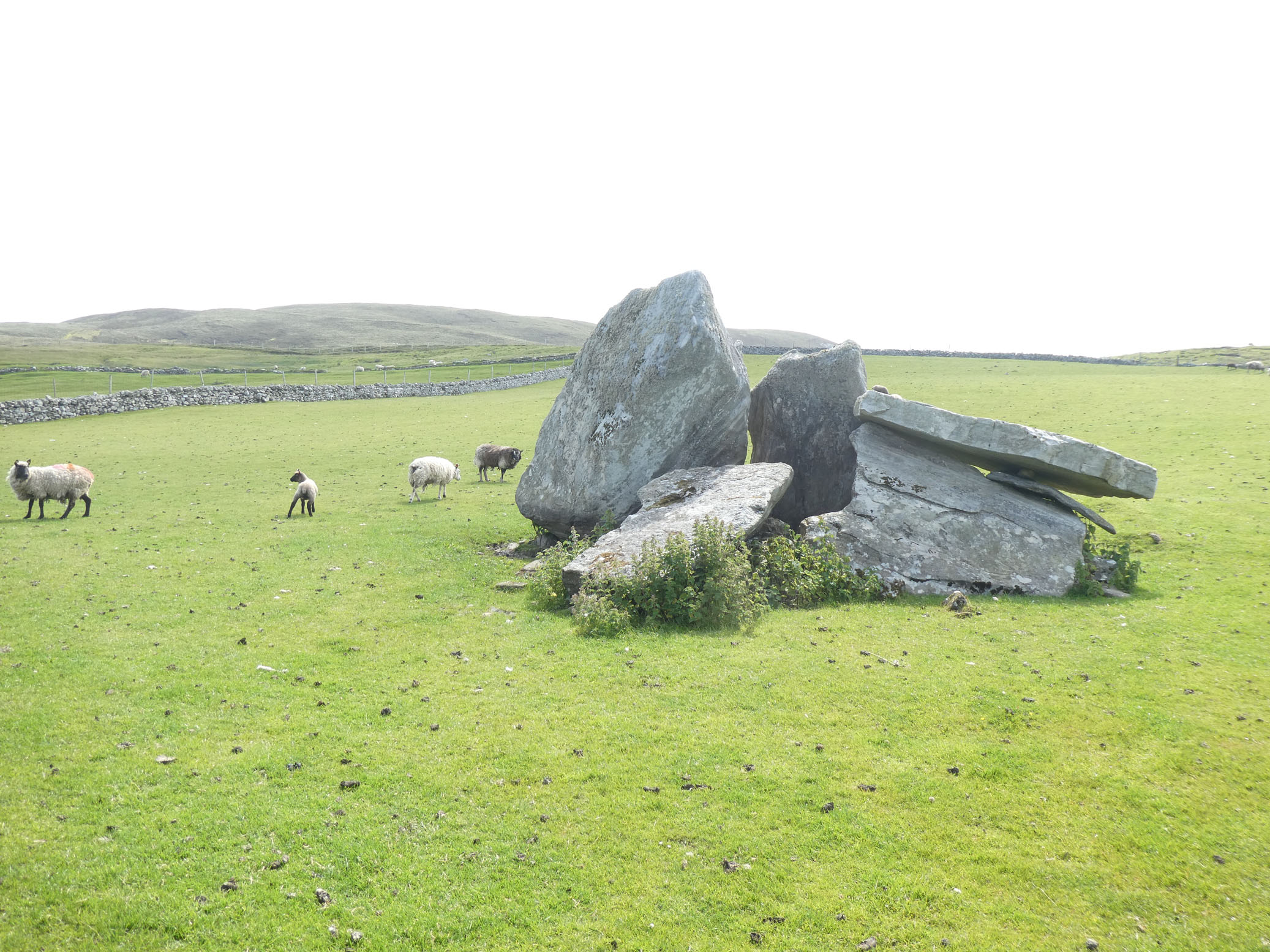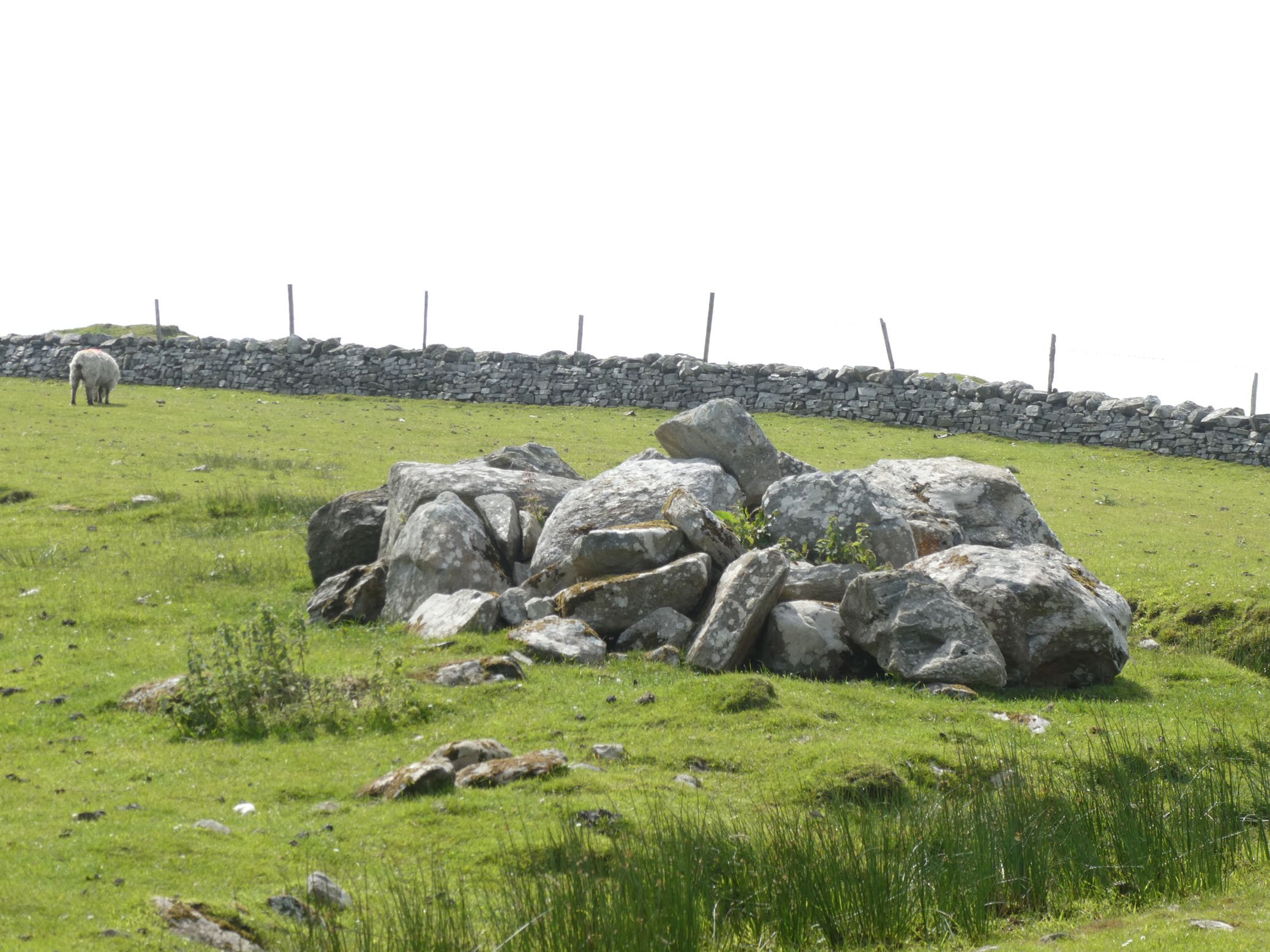 On continue par le Cloghanmore Megalithic Cemetery, quelques tombes préhistoriques disséminées dans un parc à moutons.