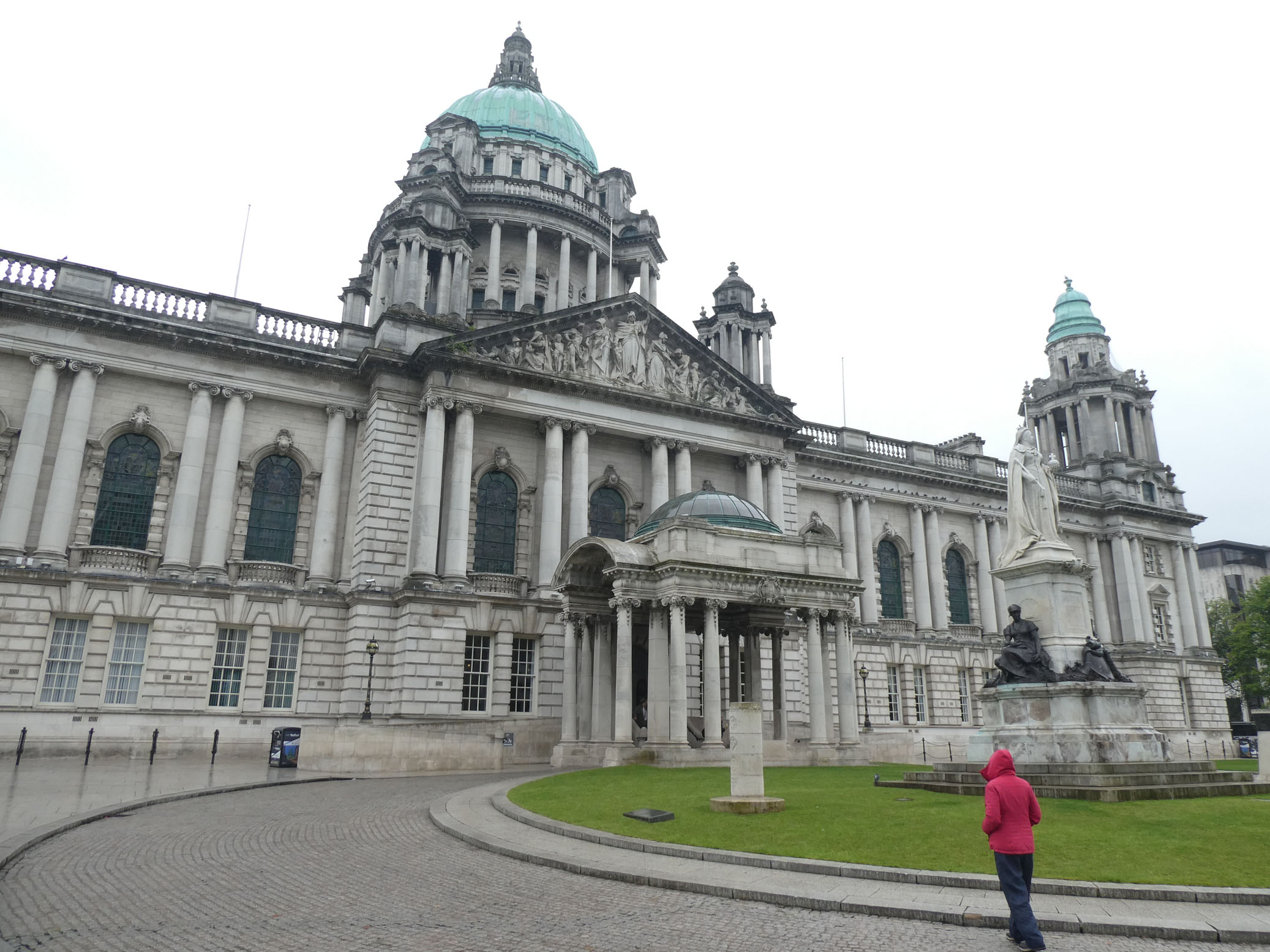 Ce n’est pas encore aujourd’hui que nous aurons une journée sans pluie. C’est encore pire que les autres jours, il a plu en continu toute la journée et nous avons donc visité Belfast sous la pluie.