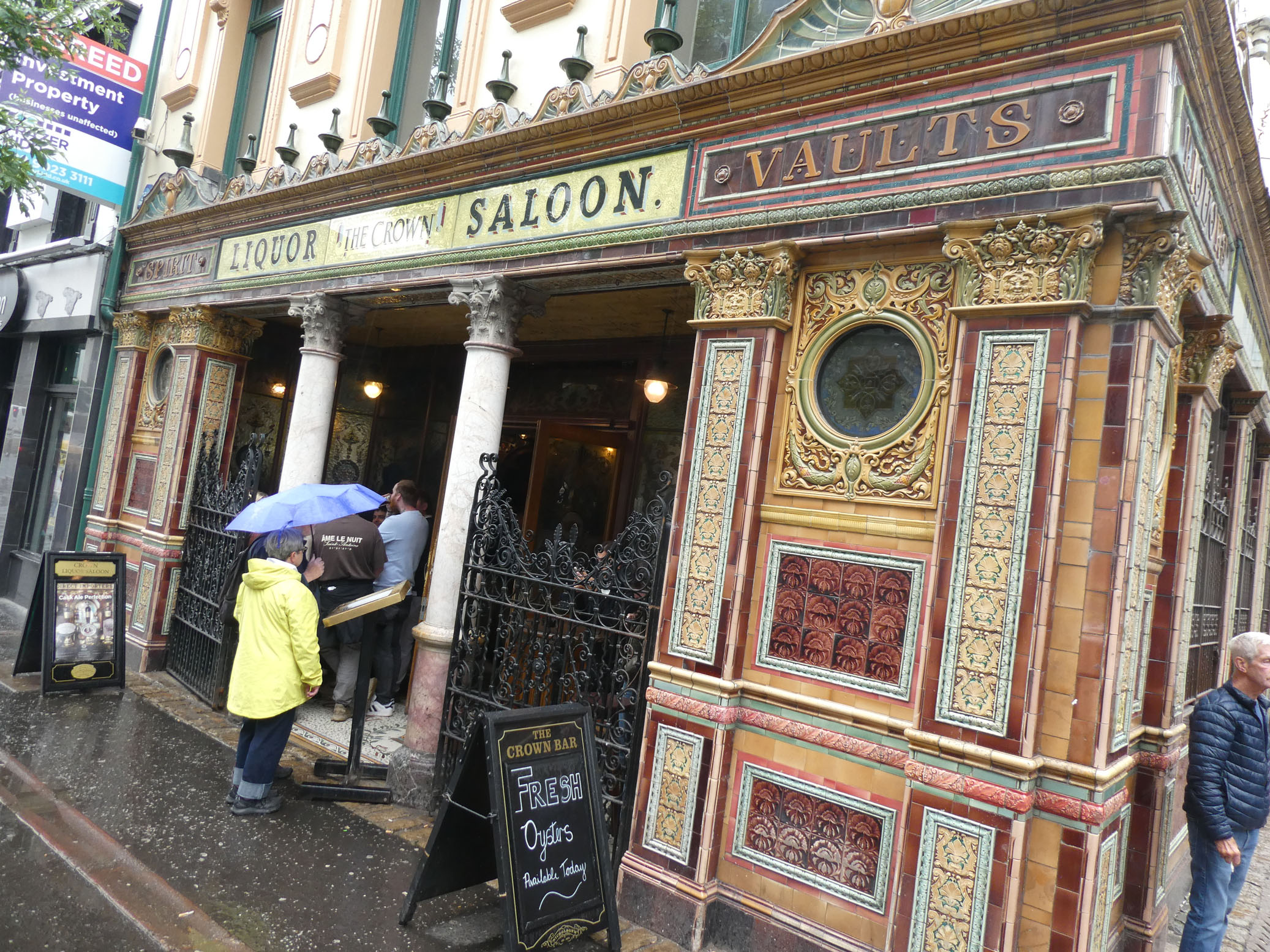 Le Crown Liquor Saloon a été créé en 1826. Il est recommandé par le Routard, alors on va y faire un tour.