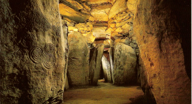 On peut entrer dans la chambre funéraire du tumulus de Newgrange.