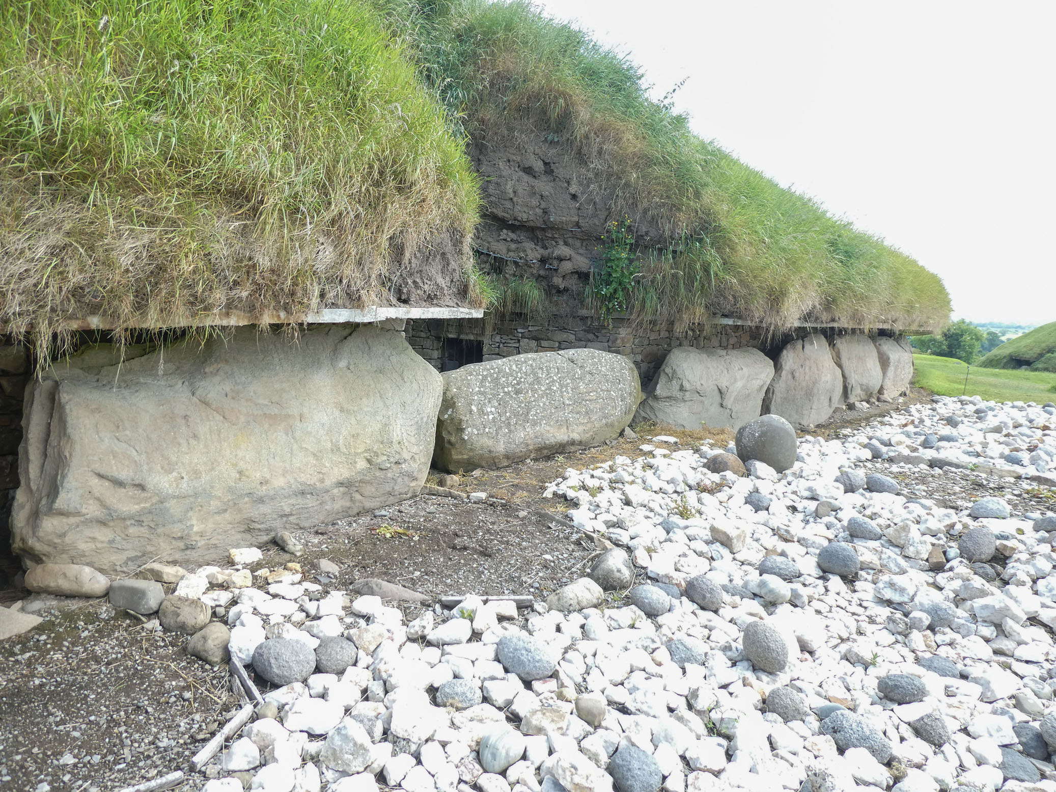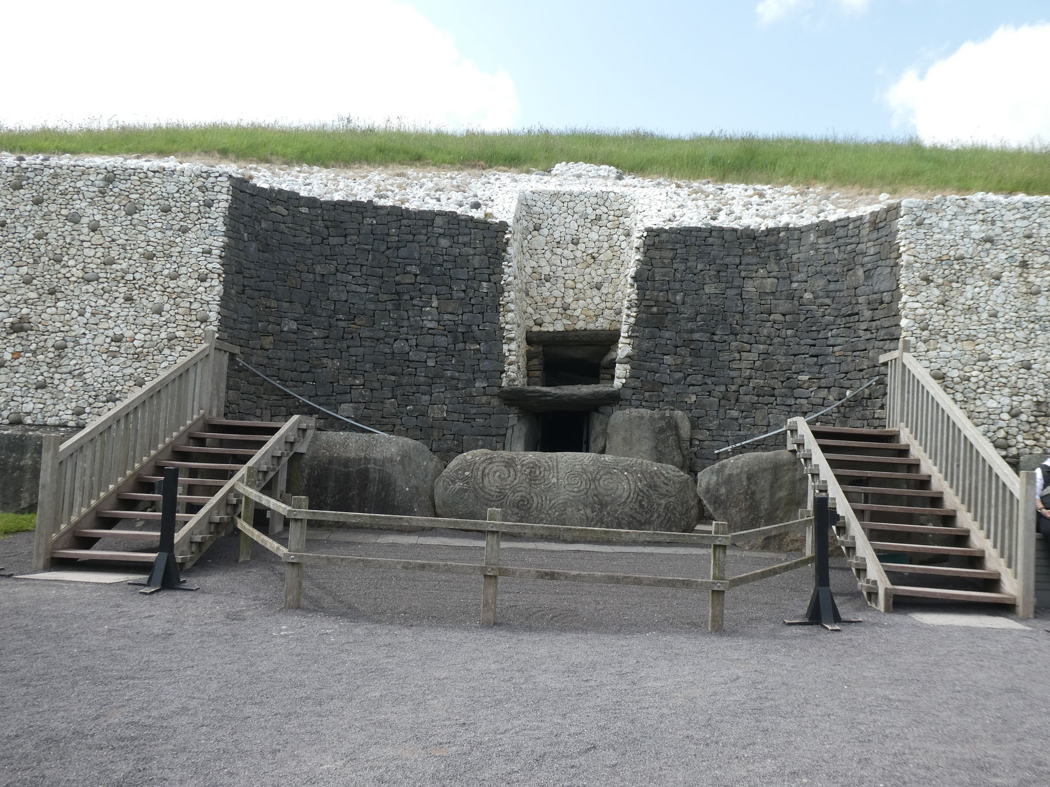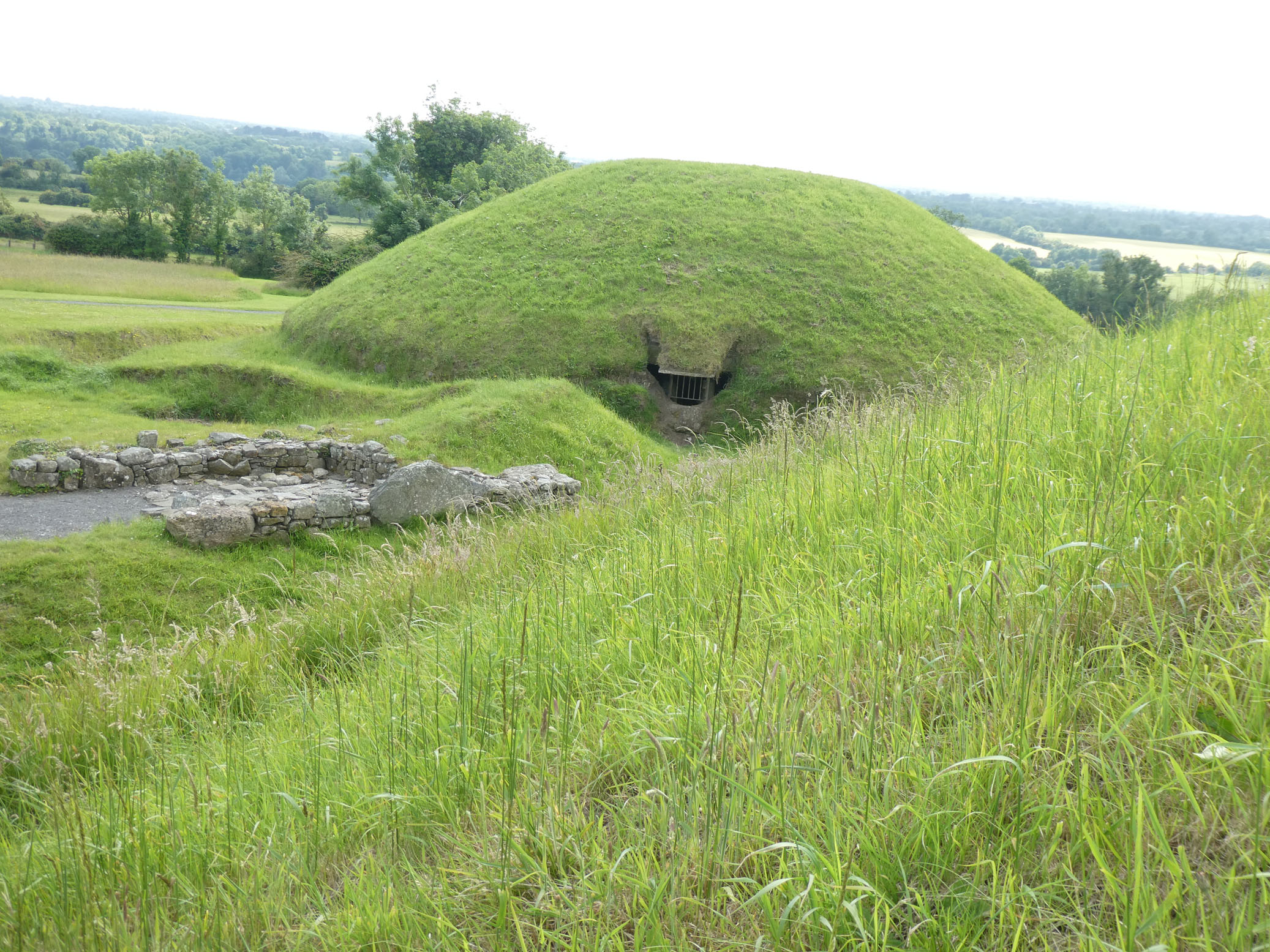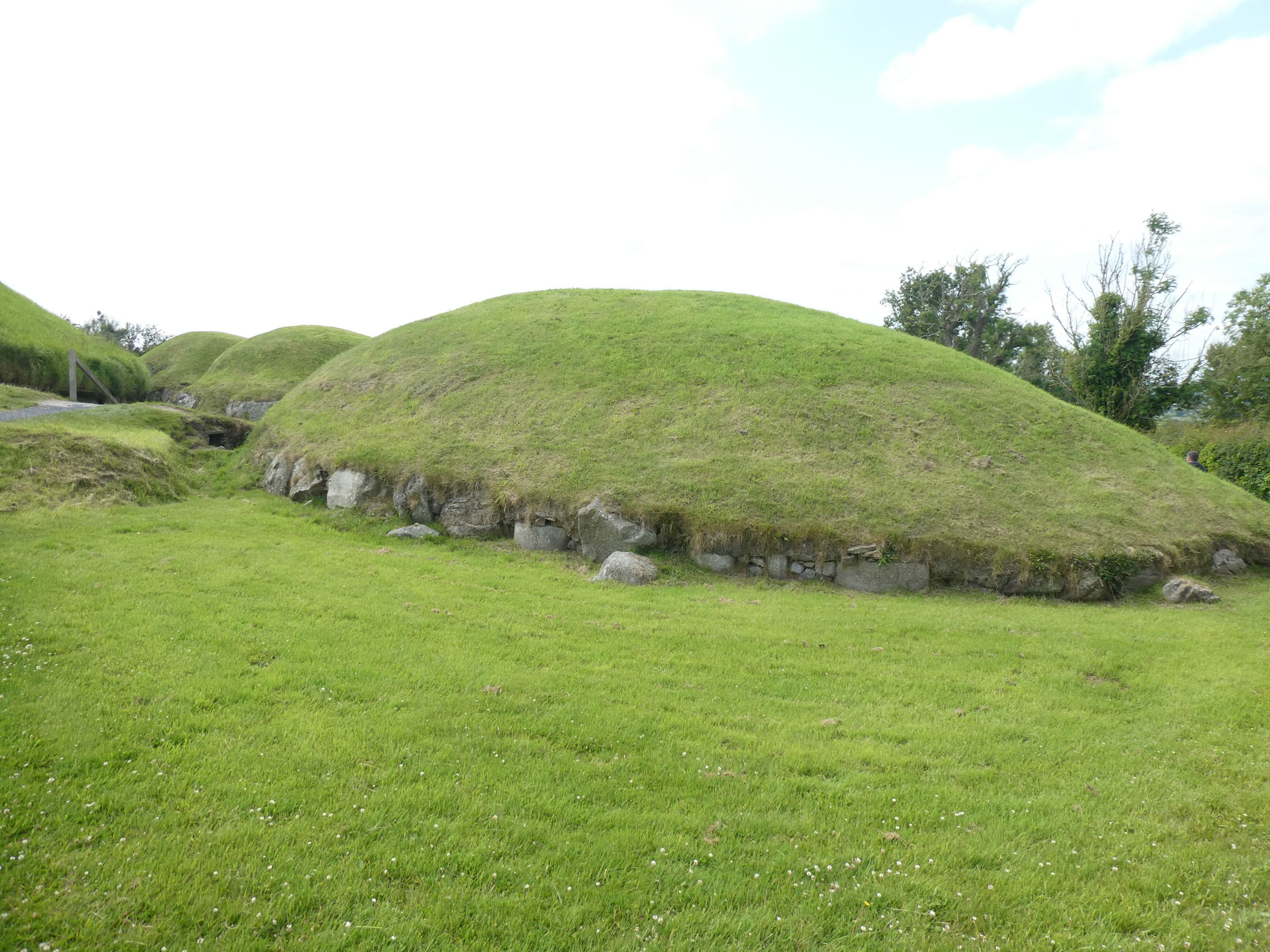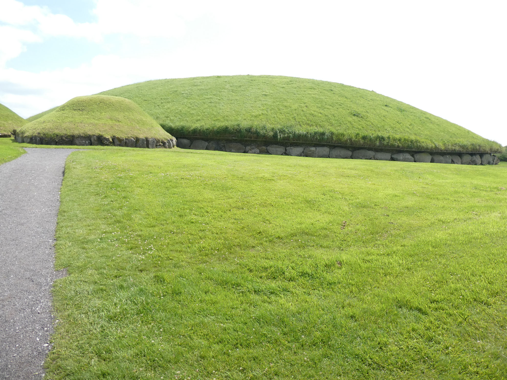 Le tumulus de Knowth est le plus grand et présente un certain nombre de pierres gravées disposées tout autour.