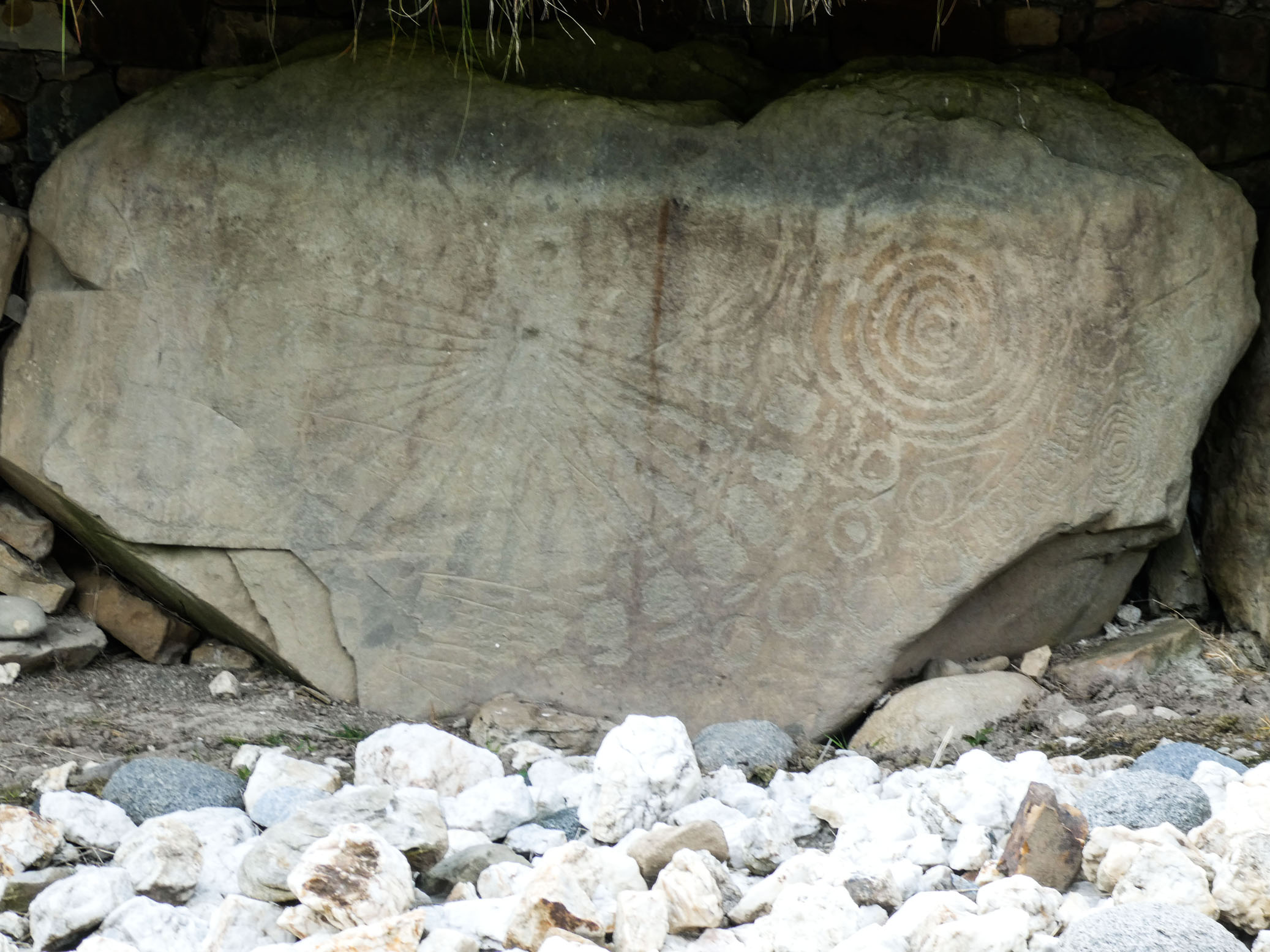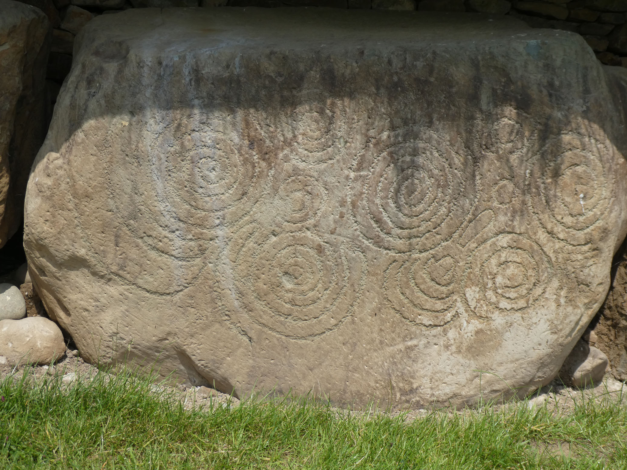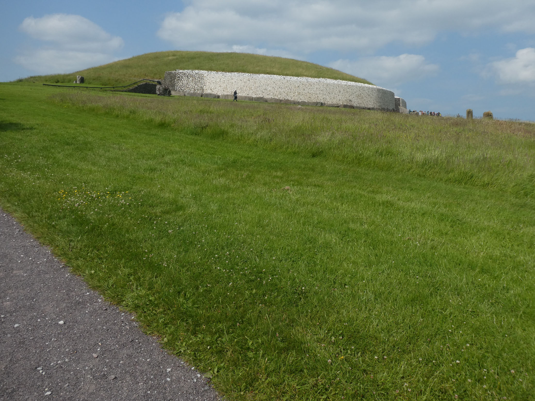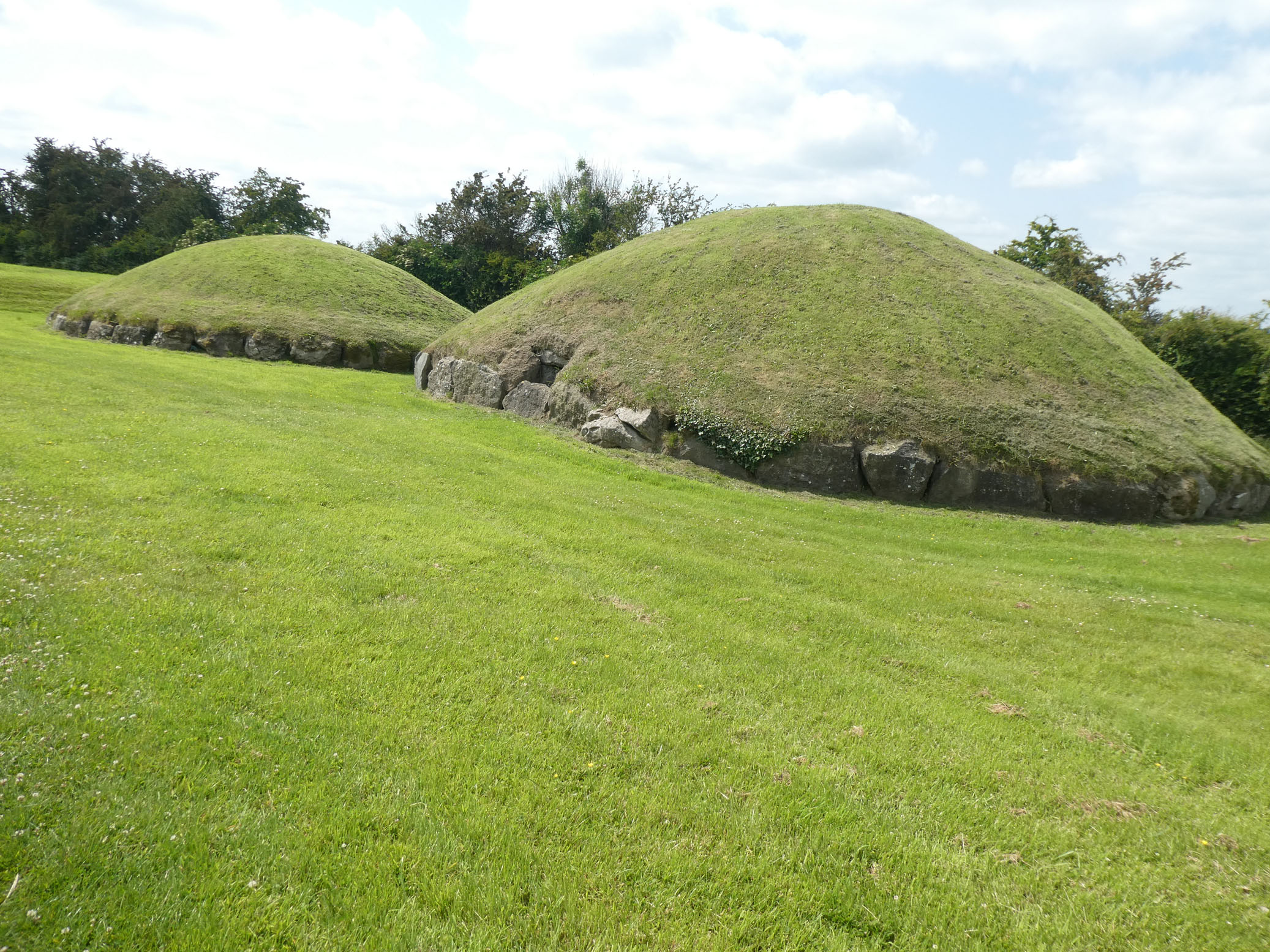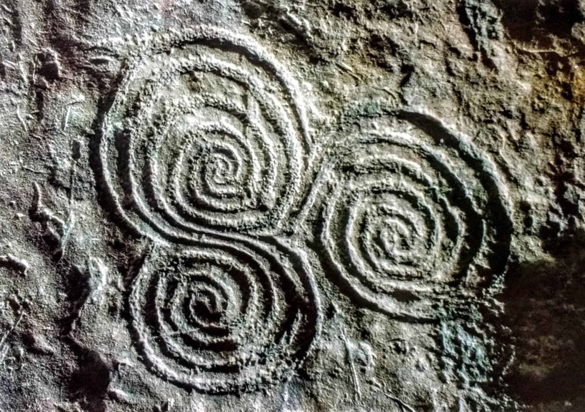 Le tumulus de Knowth est le plus grand et présente un certain nombre de pierres gravées disposées tout autour.