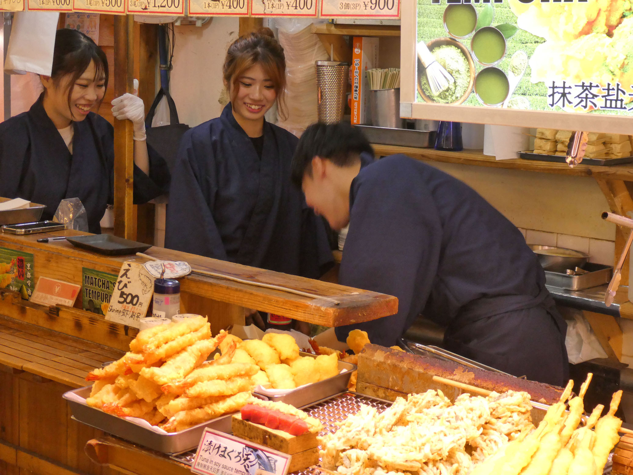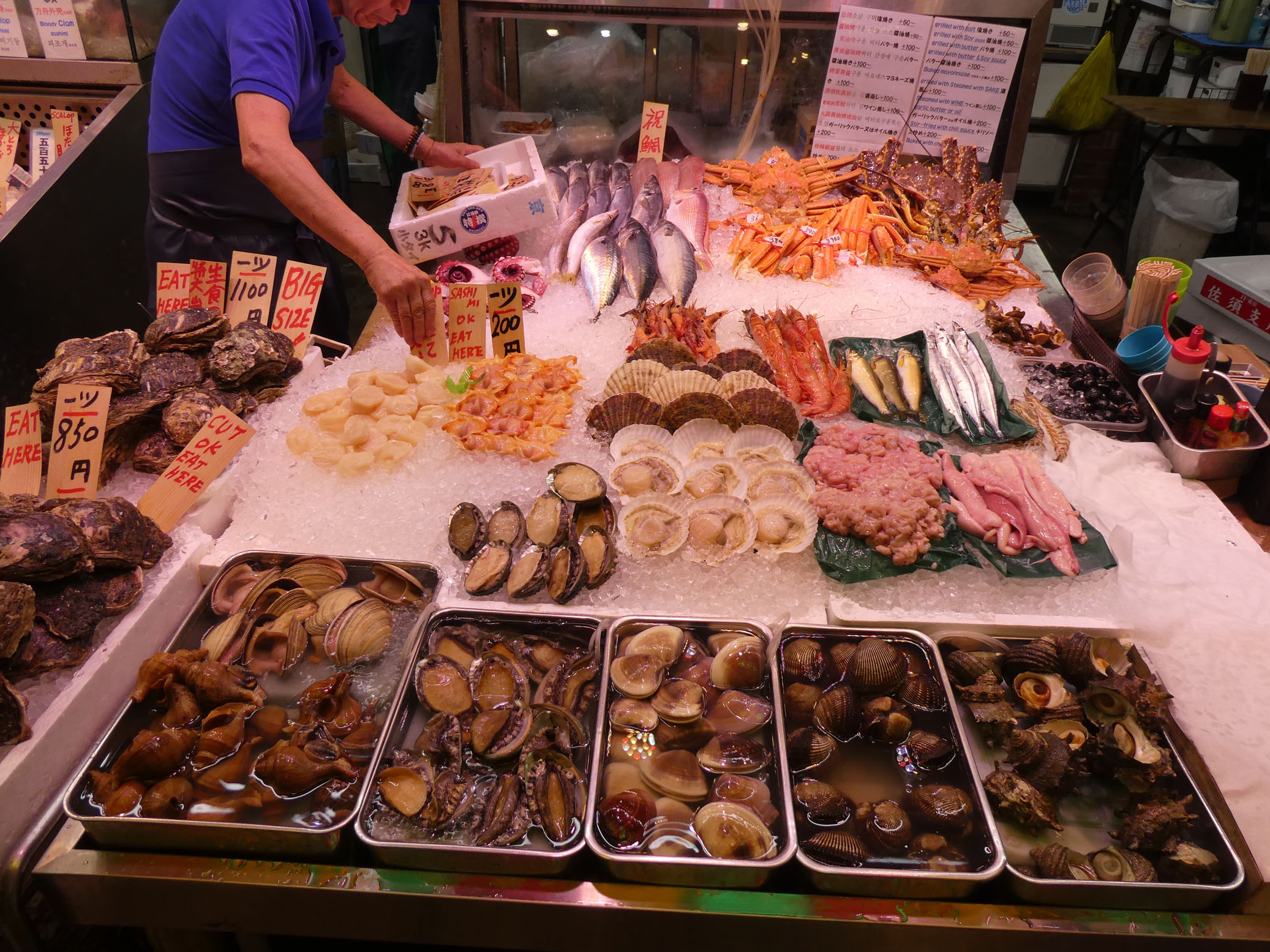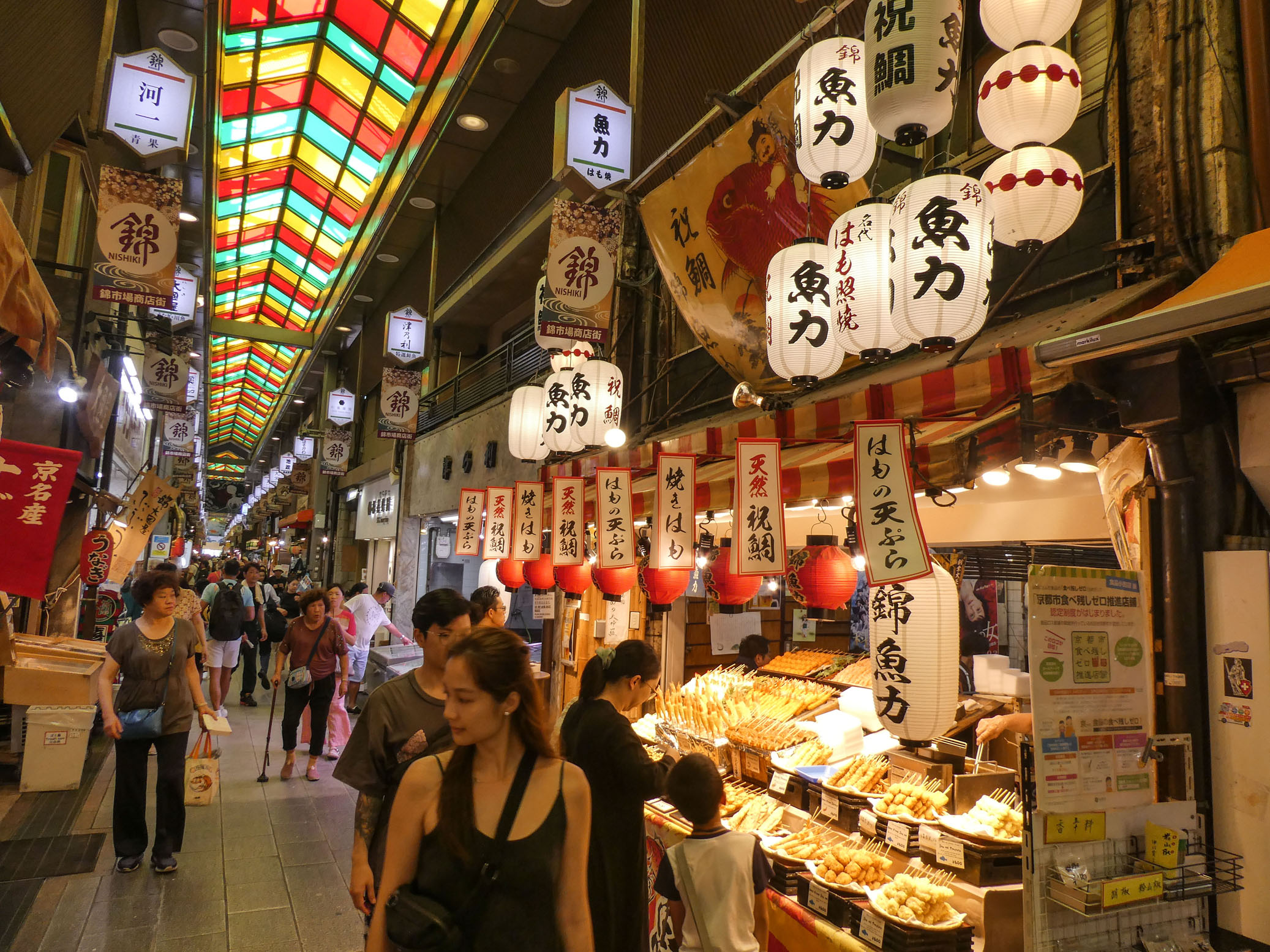 Le marché Nishiki aligne sur une allée de quelques centaines de mètres de quoi s’alimenter et vider le porte-monnaie (ou la carte bancaire chez les commerçants qui ne sont pas « cash only »).