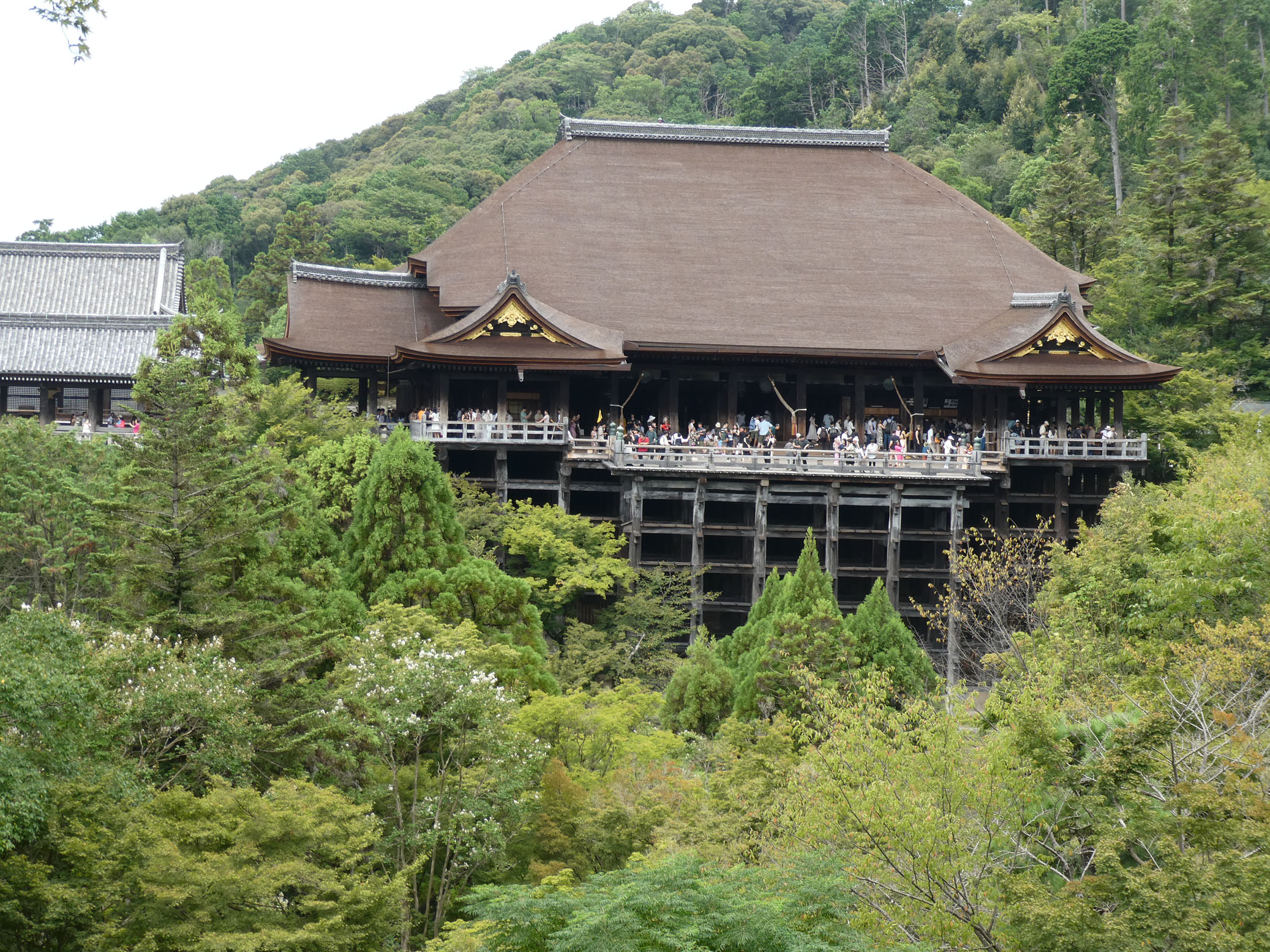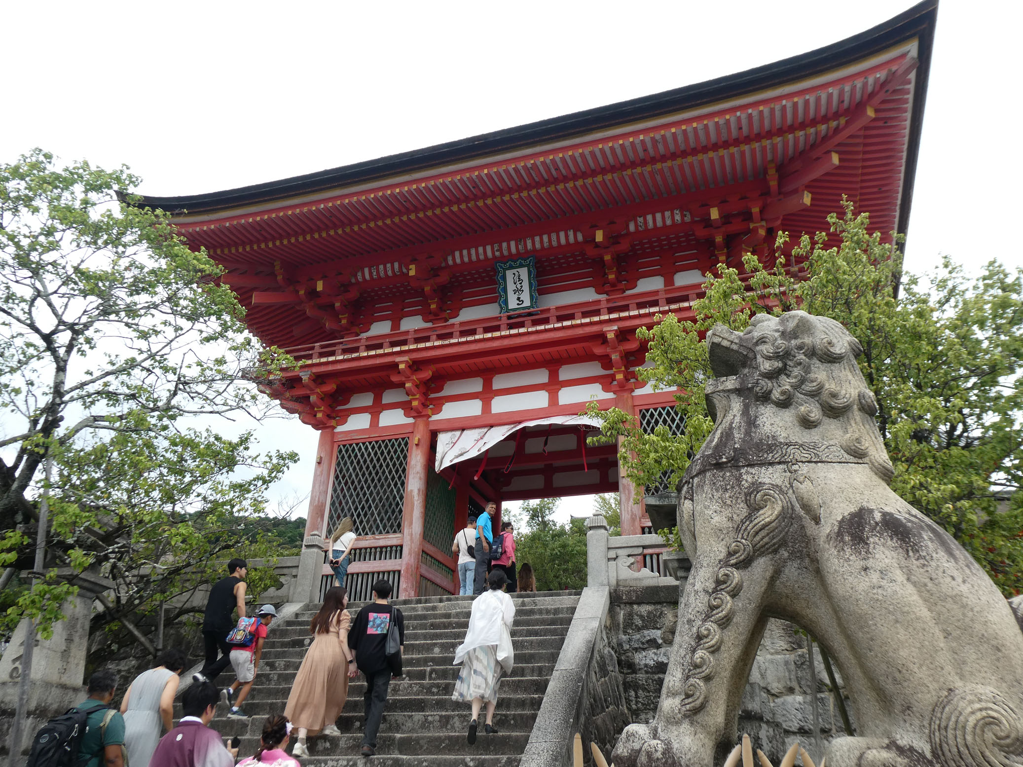 Le temple Kiyomizu-dera est un des temples les plus connus et les plus visités de Kyoto, dit le Routard. Et il a raison, nous n’étions pas les seuls à avoir eu l’idée. Le temple principal du site est bâti sur une terrasse reposant sur 139 piliers de bois. Ça c’est de la terrasse de pro !