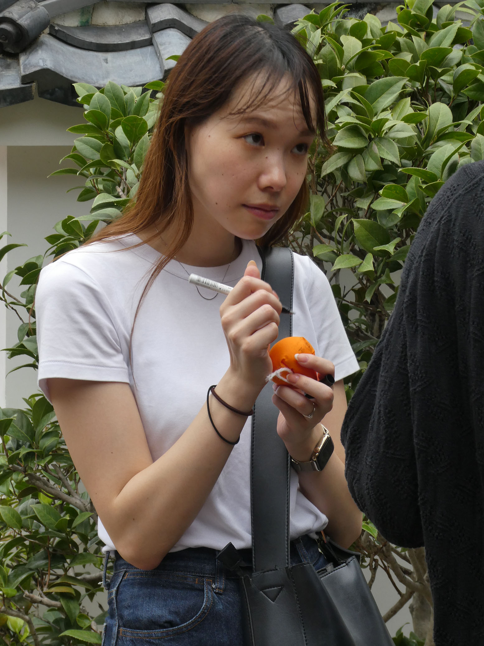 Une autre façon de faire un voeu : on passe dans le tunnel dans un sens, puis dans l’autre. Il y a 20 personnes qui font la queue pour passer.