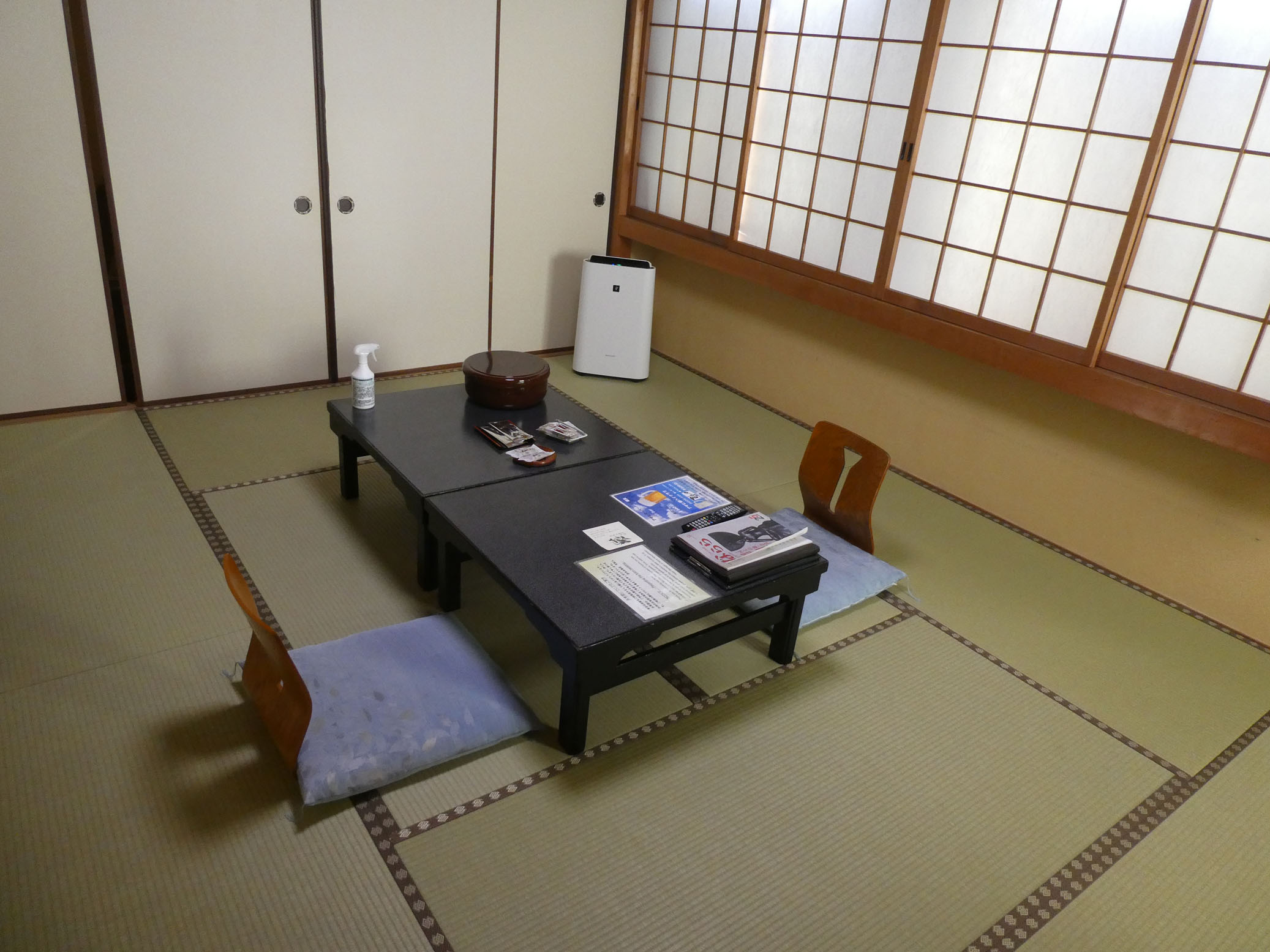 Notre chambre en position jour. Les futons sont rangés dans le placard du fond.