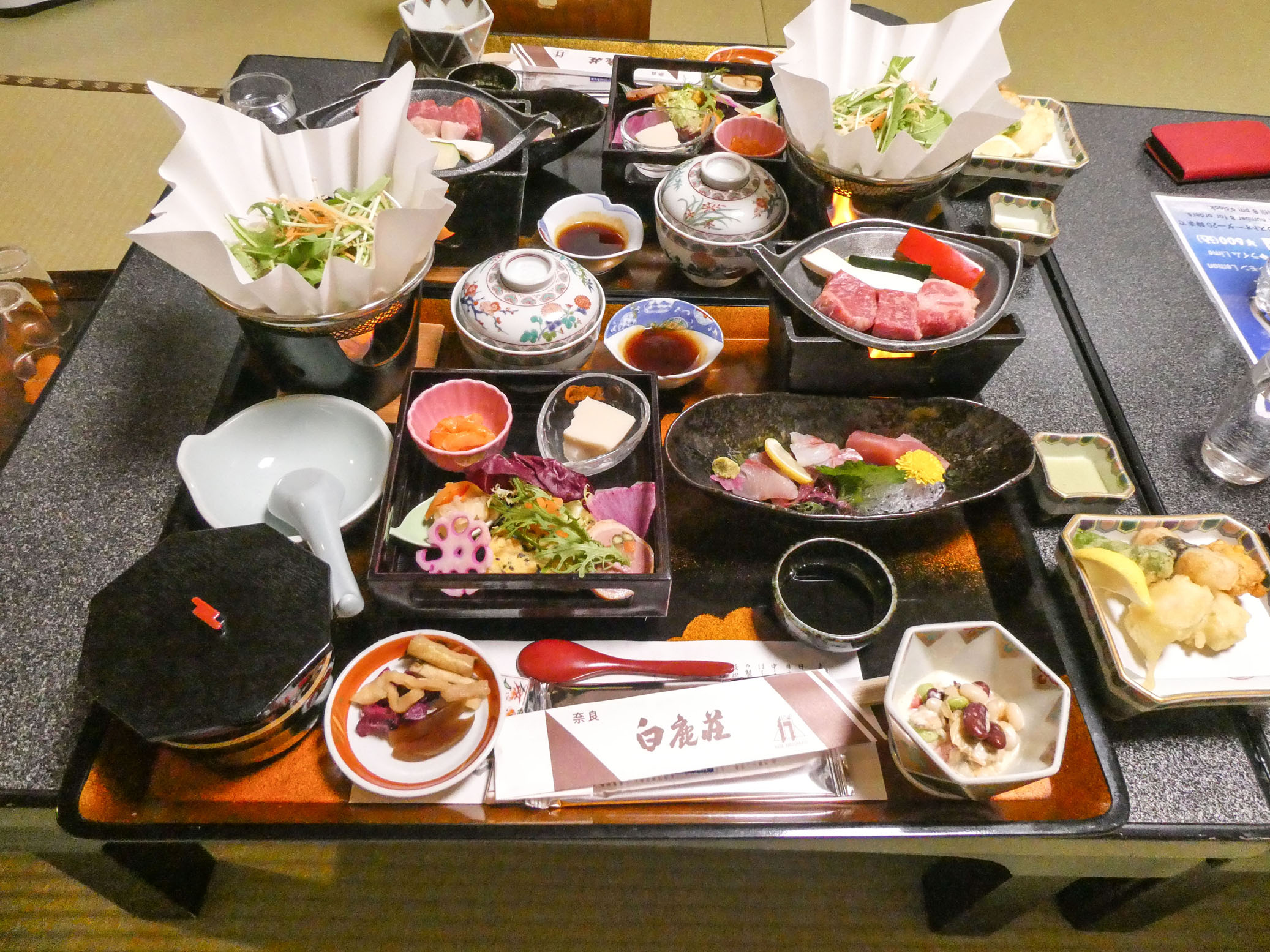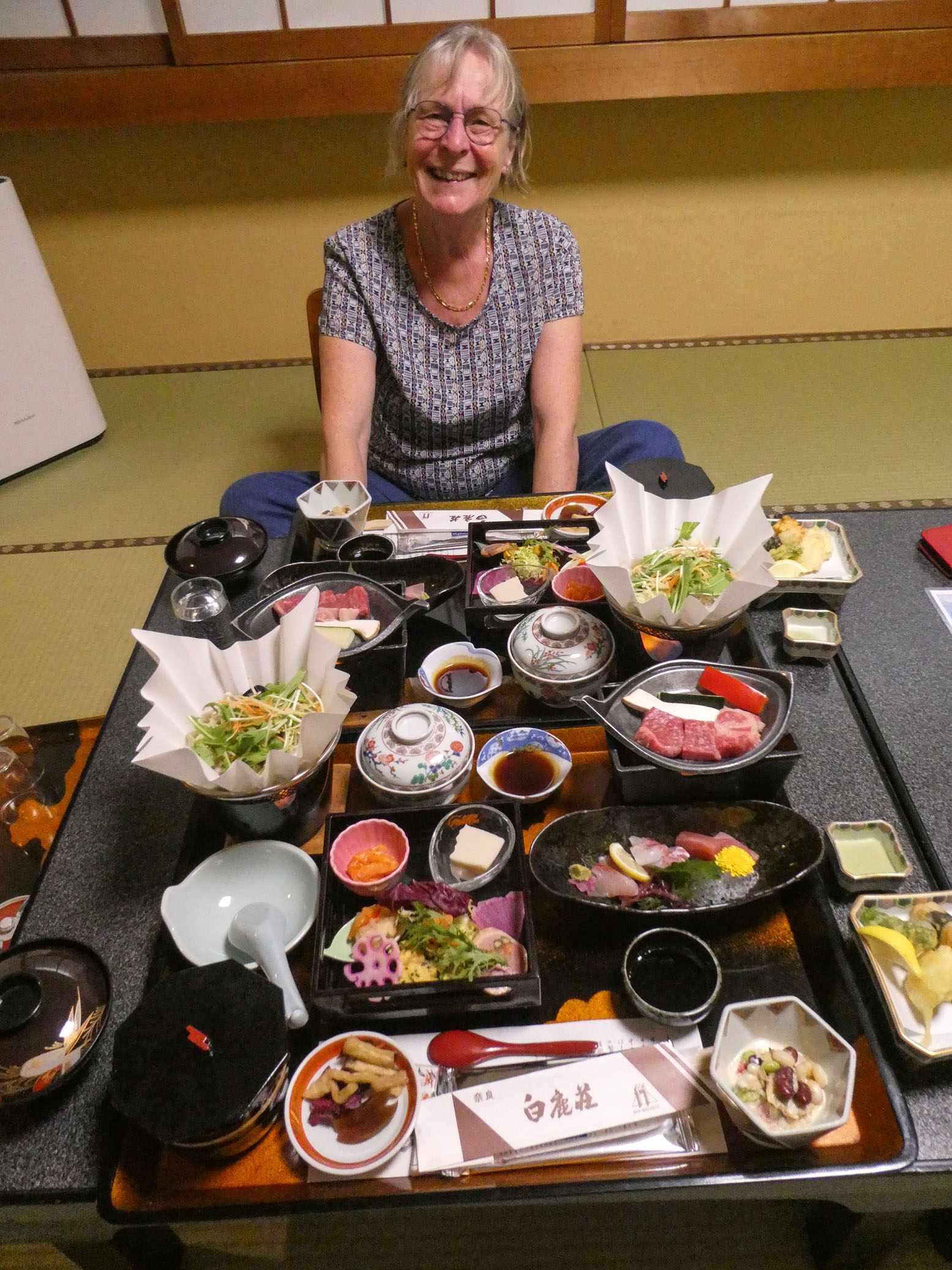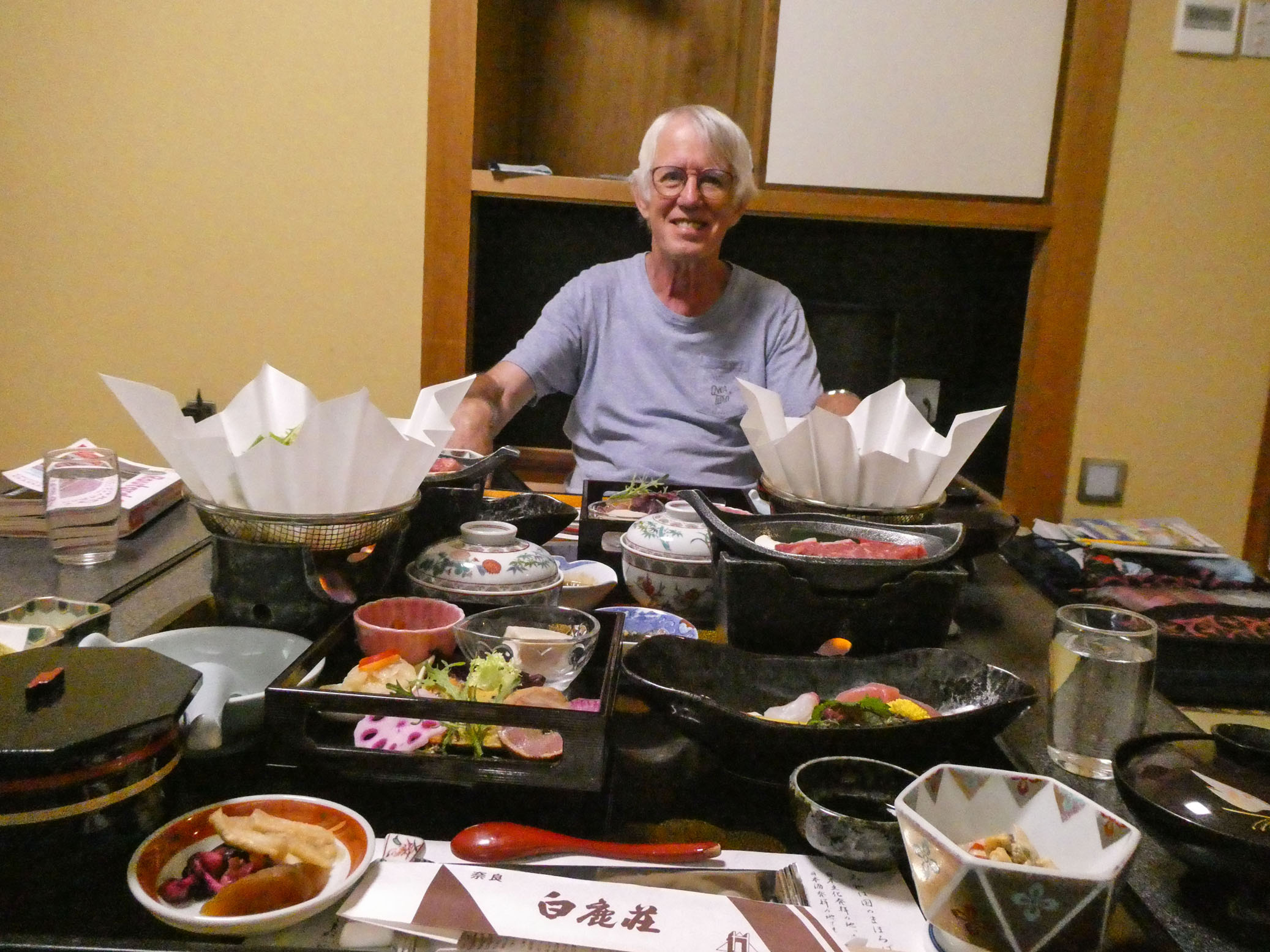 Pour cette nuit, nous avons choisi le luxe. Une grande chambre à la japonaise et un délicieux et copieux repas servi dans la chambre.