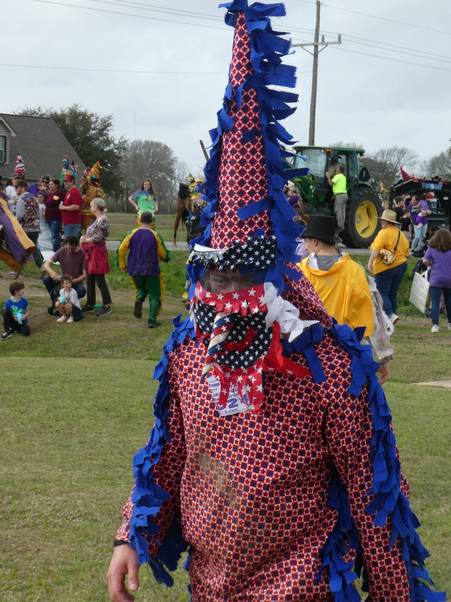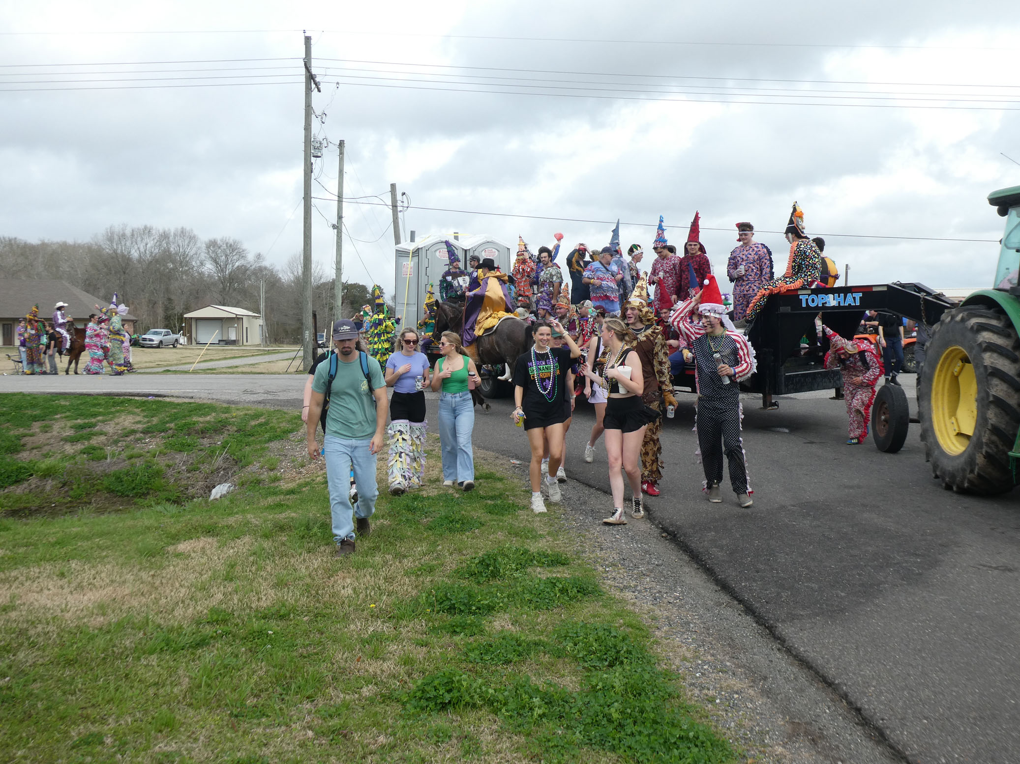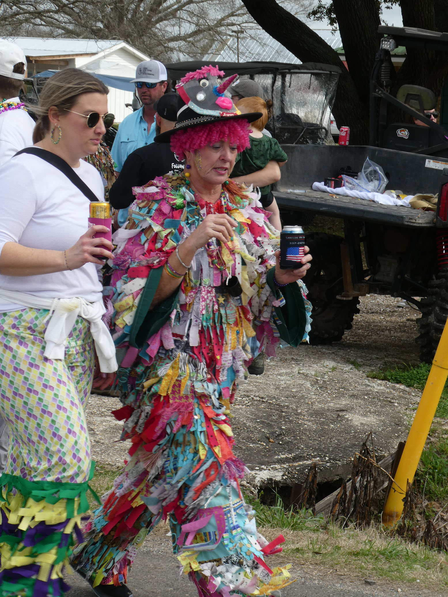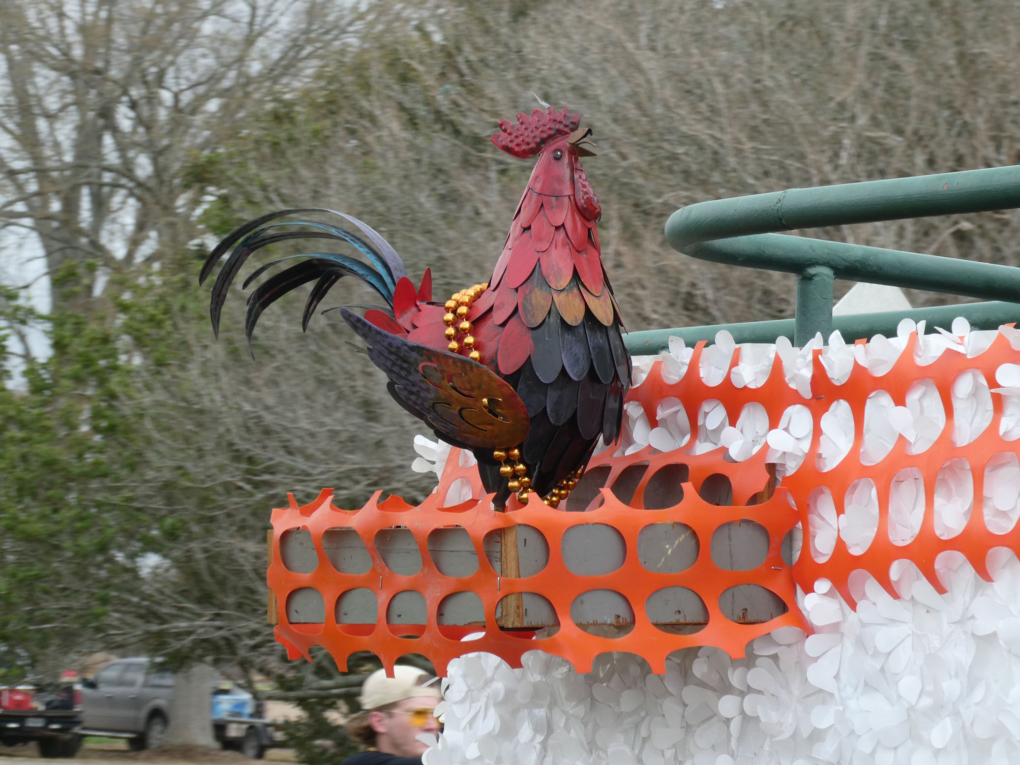 Aujourd’hui nous avons vu l’Amérique profonde. Nous sommes allés à Church Point (Pointe à l’Église), dans la campagne près de Lafayette, pour suivre un « Courir de Mardi Gras ». Des chevaux, des déguisements, des poules qu’on jette et que les gens doivent attraper, une parade, des colliers jetés dans la foule, de la musique … et beaucoup de bière. Trump semble y avoir une bonne réserve d’électeurs.