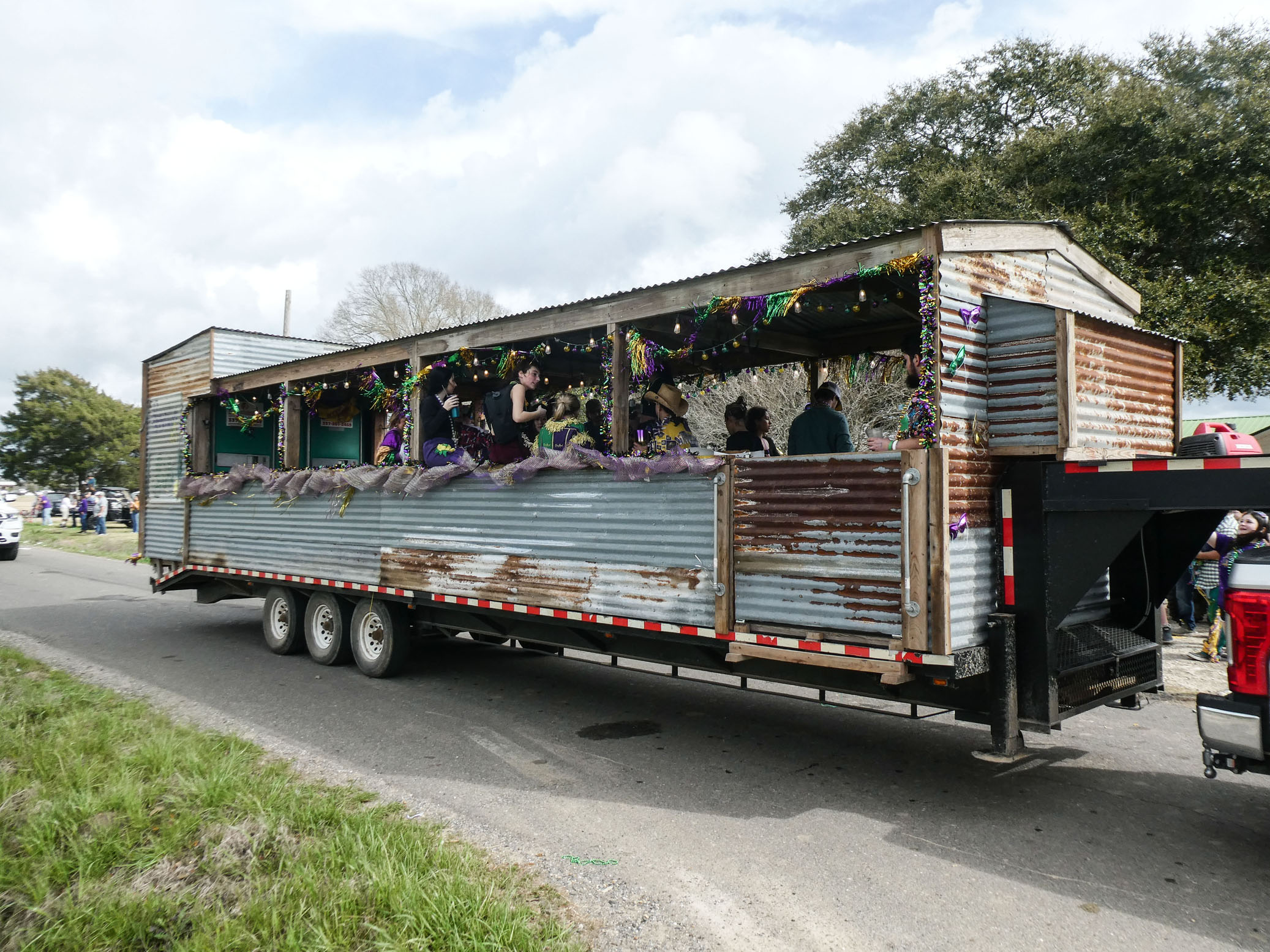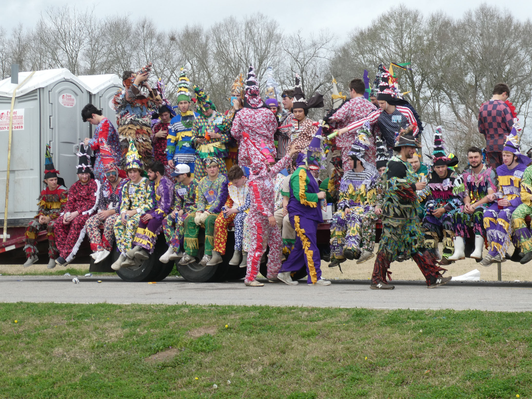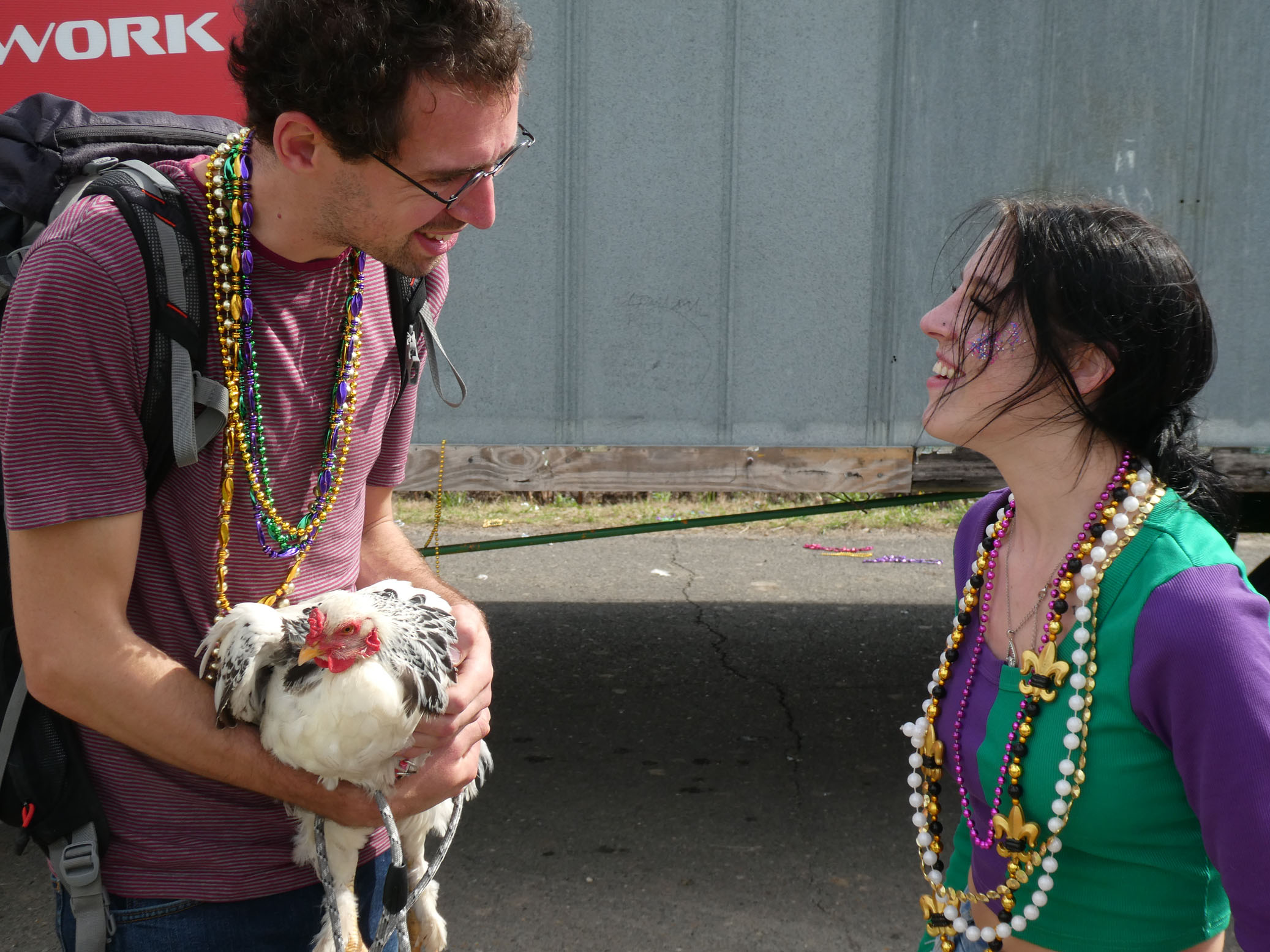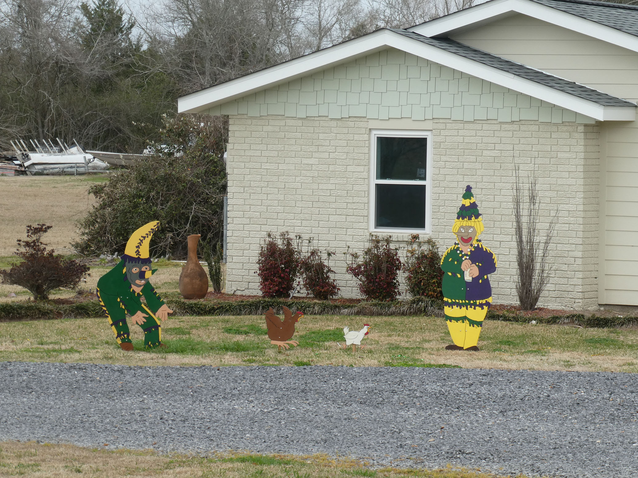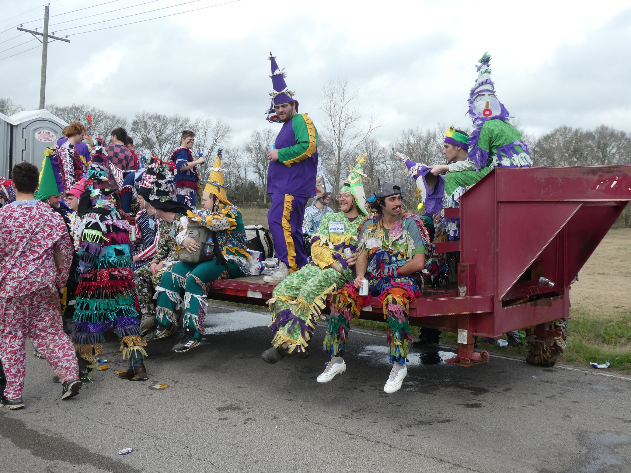 Aujourd’hui nous avons vu l’Amérique profonde. Nous sommes allés à Church Point (Pointe à l’Église), dans la campagne près de Lafayette, pour suivre un « Courir de Mardi Gras ». Des chevaux, des déguisements, des poules qu’on jette et que les gens doivent attraper, une parade, des colliers jetés dans la foule, de la musique … et beaucoup de bière. Trump semble y avoir une bonne réserve d’électeurs.