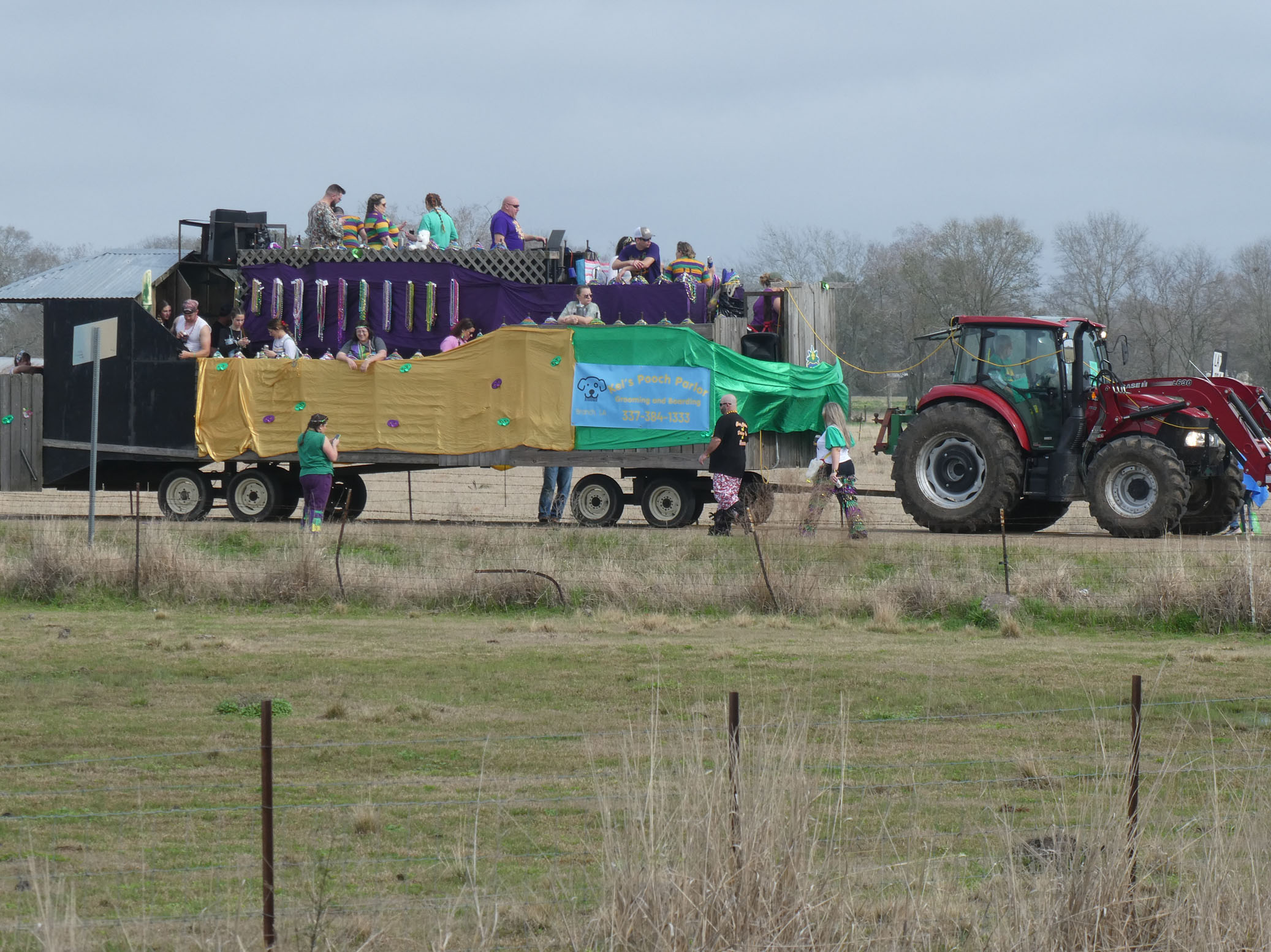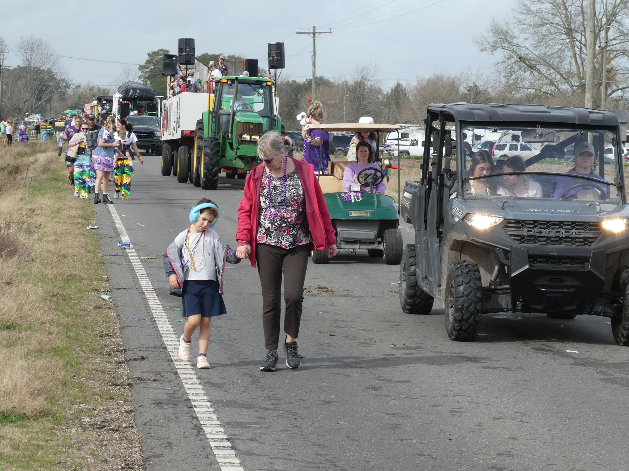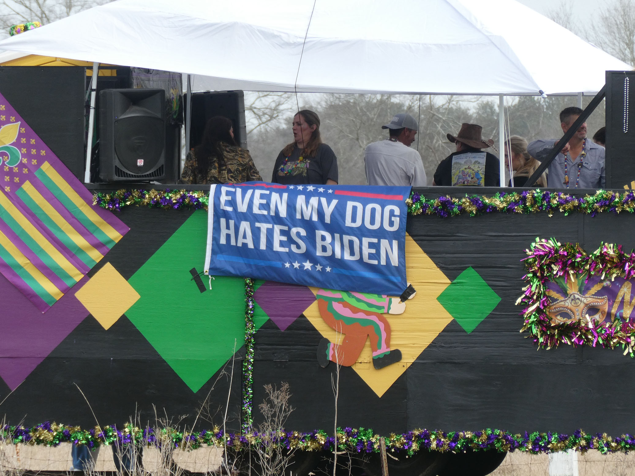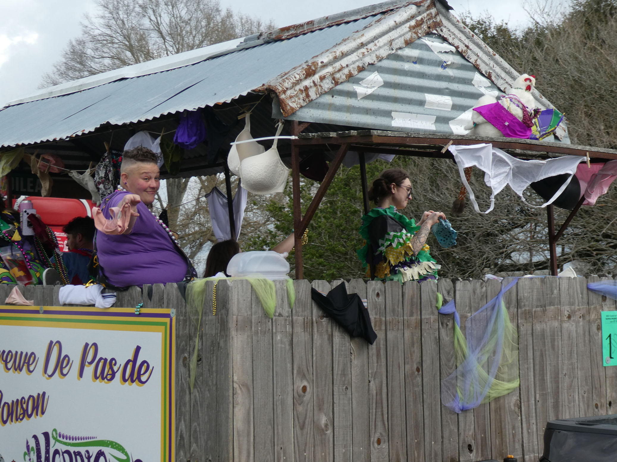 Aujourd’hui nous avons vu l’Amérique profonde. Nous sommes allés à Church Point (Pointe à l’Église), dans la campagne près de Lafayette, pour suivre un « Courir de Mardi Gras ». Des chevaux, des déguisements, des poules qu’on jette et que les gens doivent attraper, une parade, des colliers jetés dans la foule, de la musique … et beaucoup de bière. Trump semble y avoir une bonne réserve d’électeurs.
