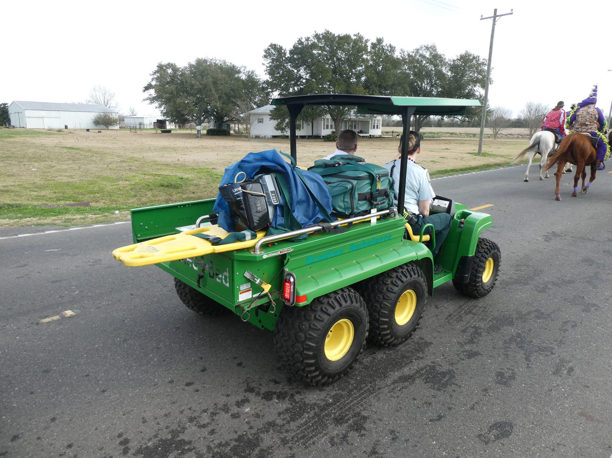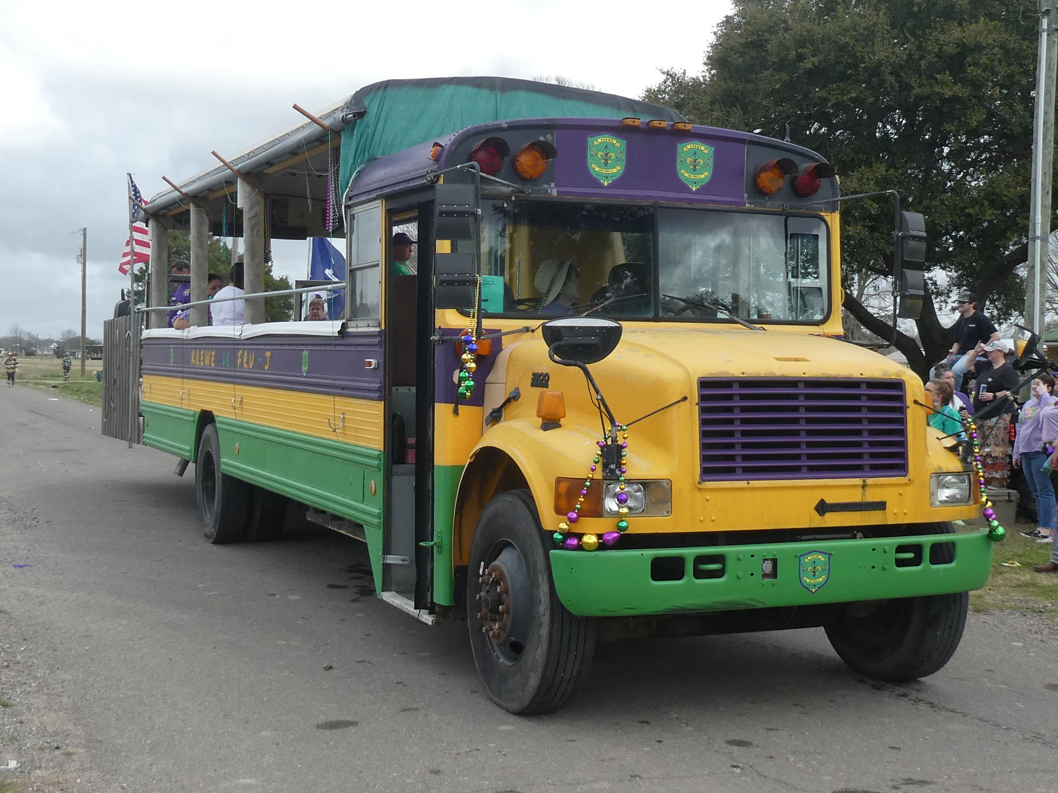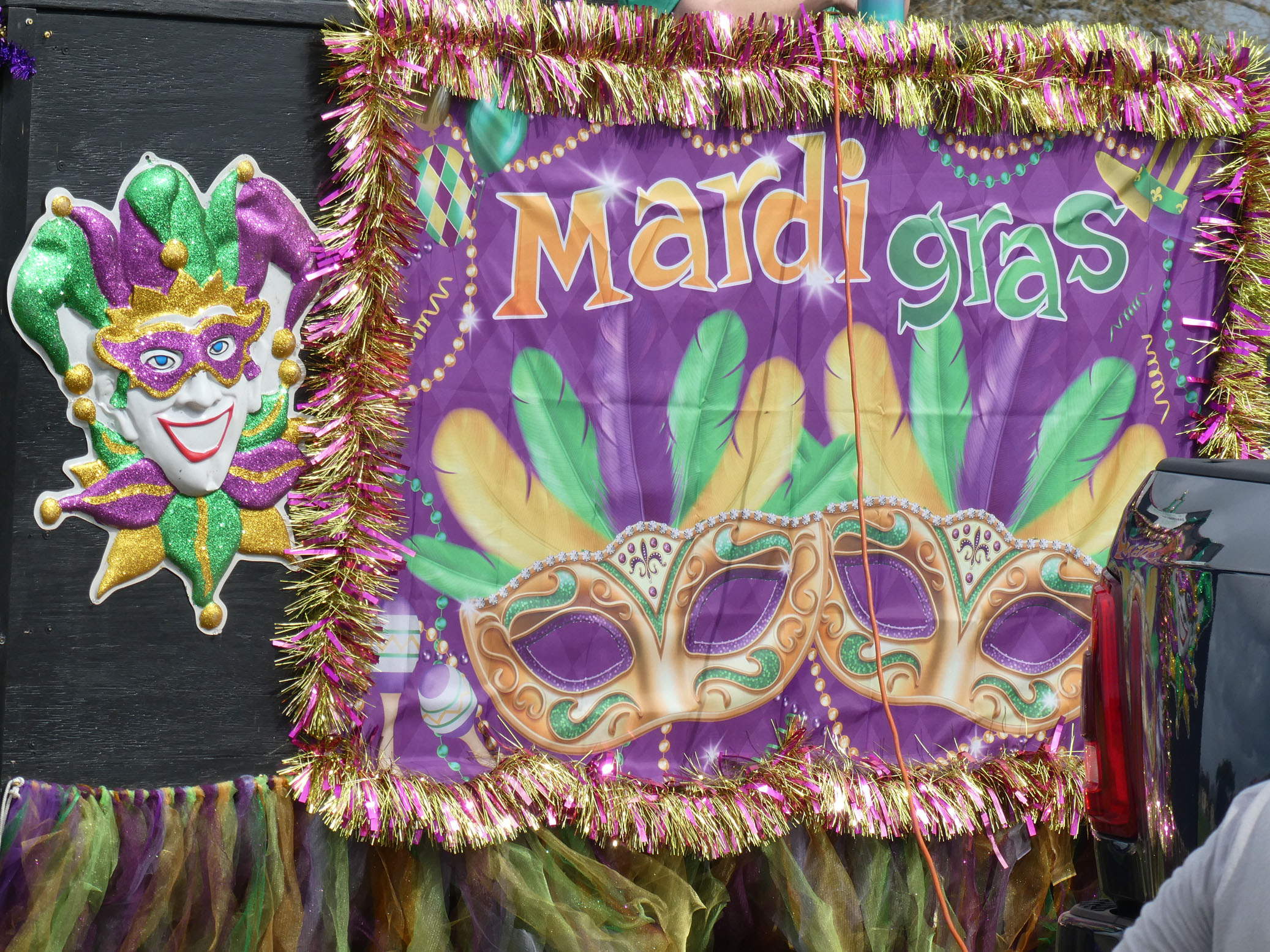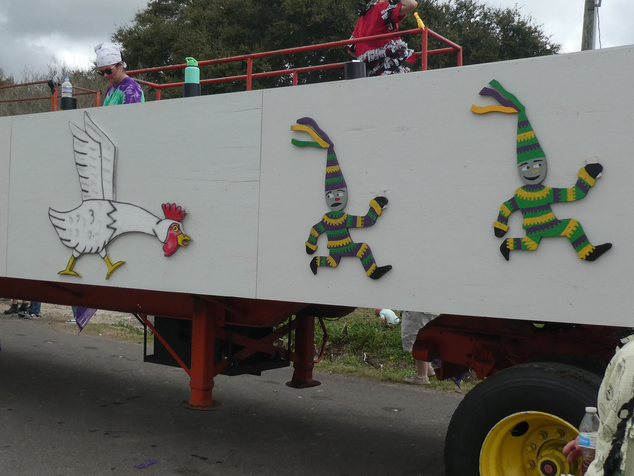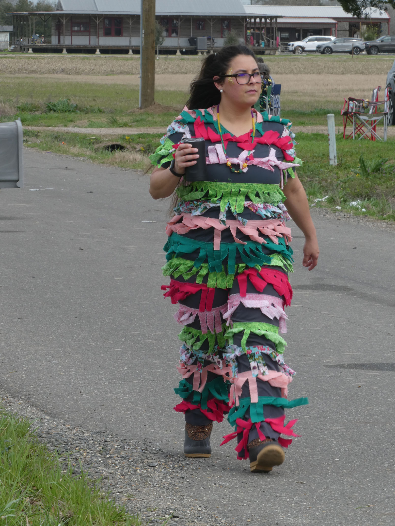 Aujourd’hui nous avons vu l’Amérique profonde. Nous sommes allés à Church Point (Pointe à l’Église), dans la campagne près de Lafayette, pour suivre un « Courir de Mardi Gras ». Des chevaux, des déguisements, des poules qu’on jette et que les gens doivent attraper, une parade, des colliers jetés dans la foule, de la musique … et beaucoup de bière. Trump semble y avoir une bonne réserve d’électeurs.