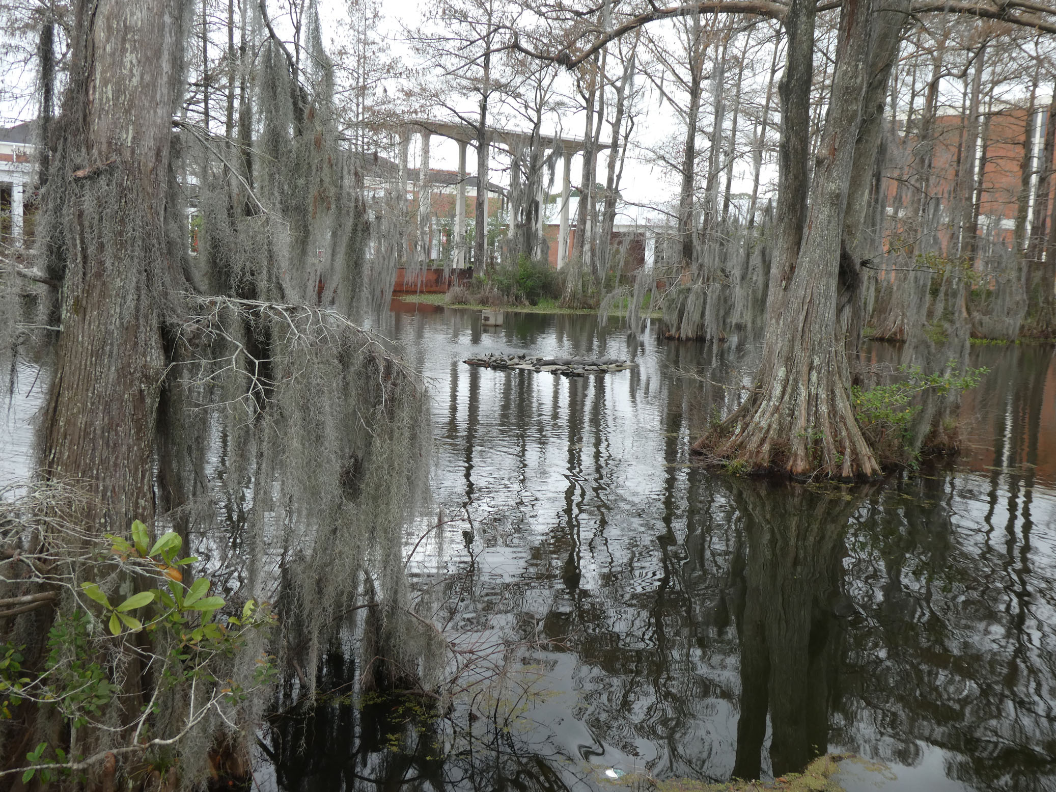 Sur la route du retour, on s’arrête à Lafayette pour pique-niquer à côté de l’étang à alligators du campus universitaire.