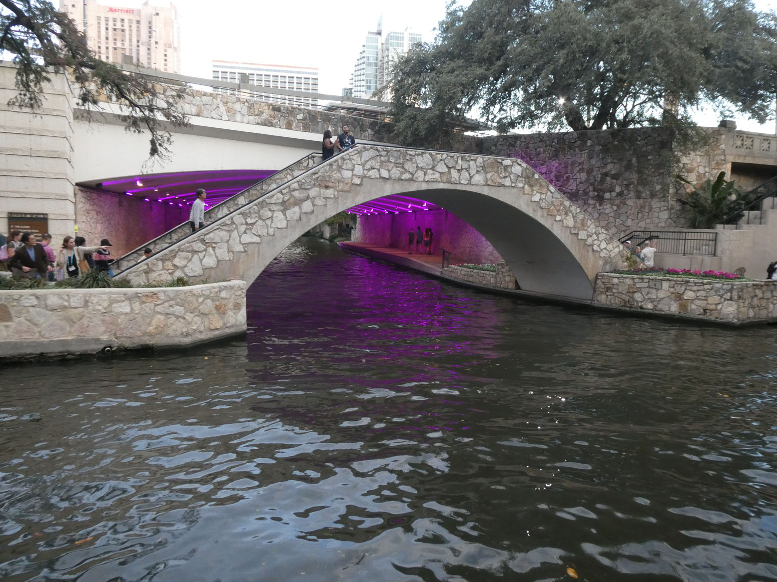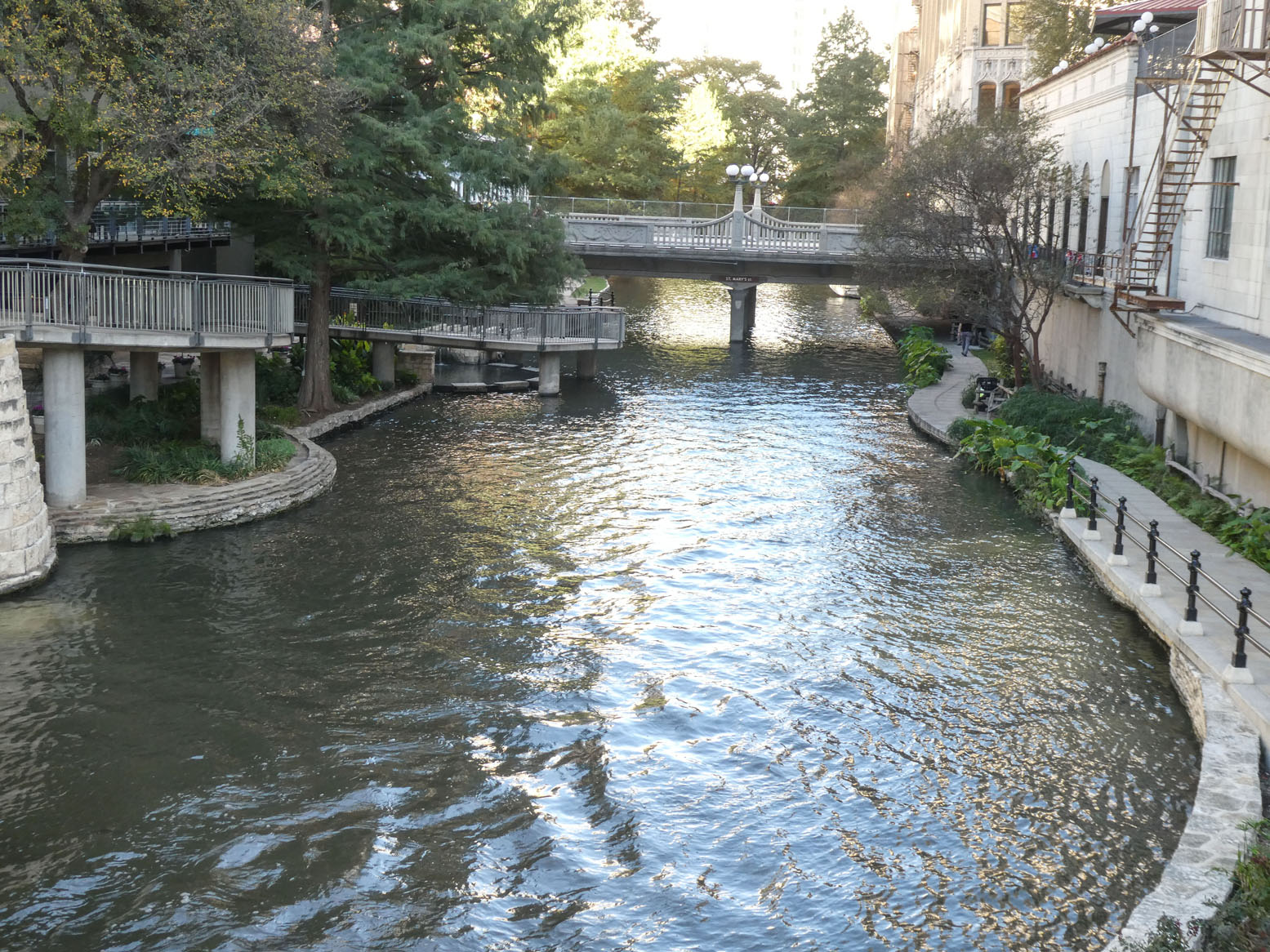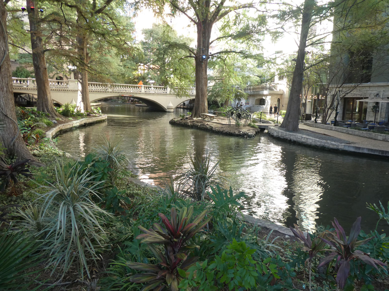 Le River Walk, promenade très agréable, bien que très touristique, le long d’un bras de la rivière qui traverse la ville. On y voit de drôles de gondoles.