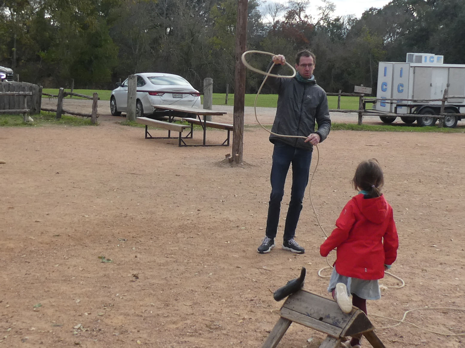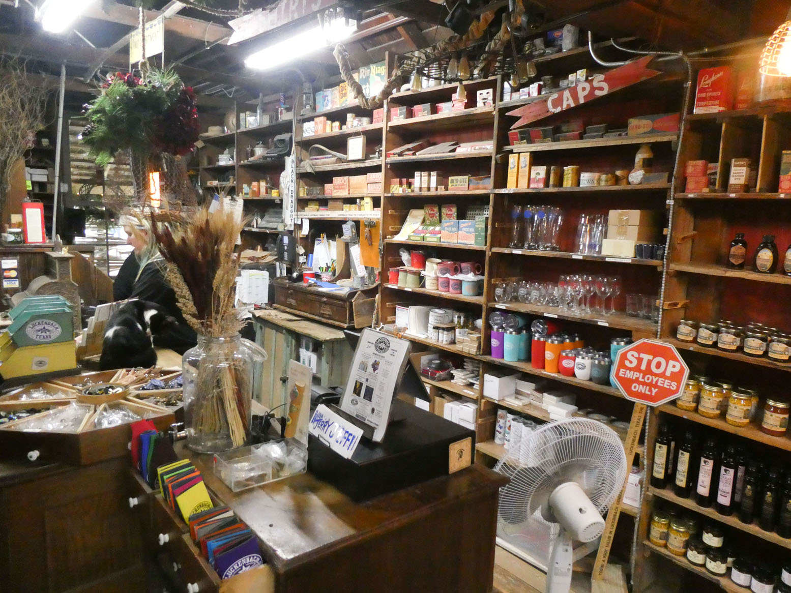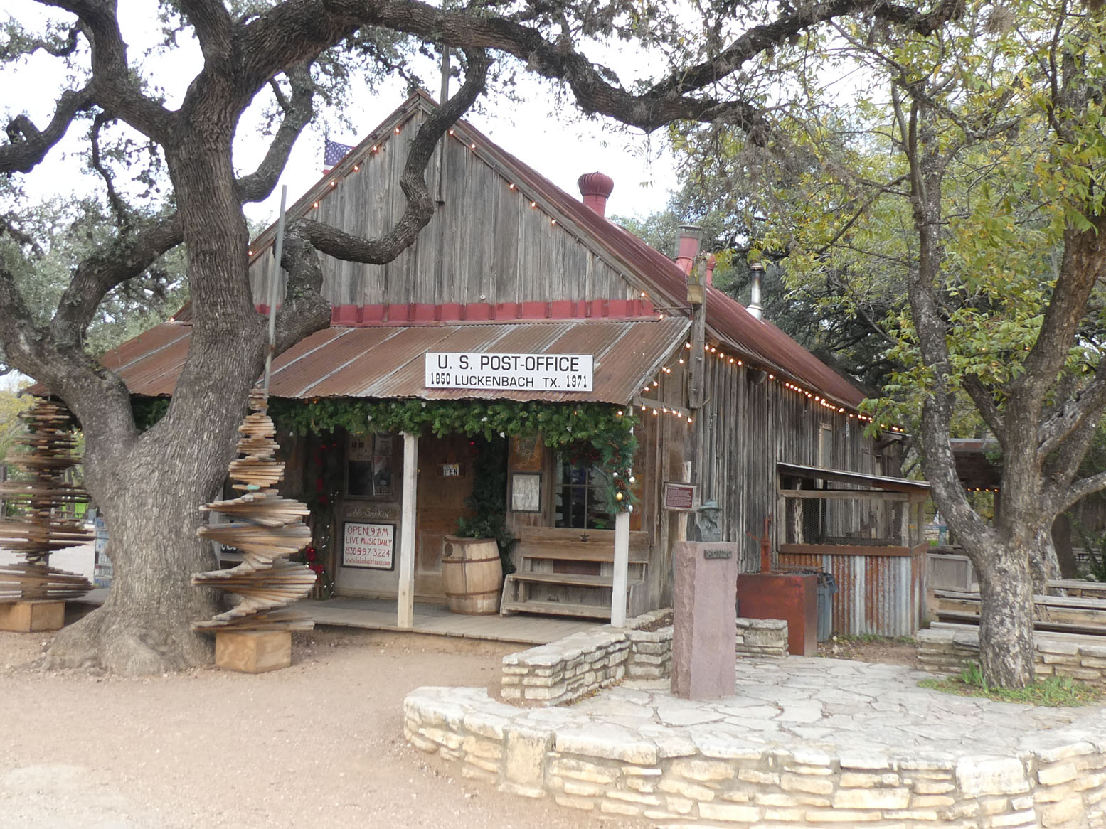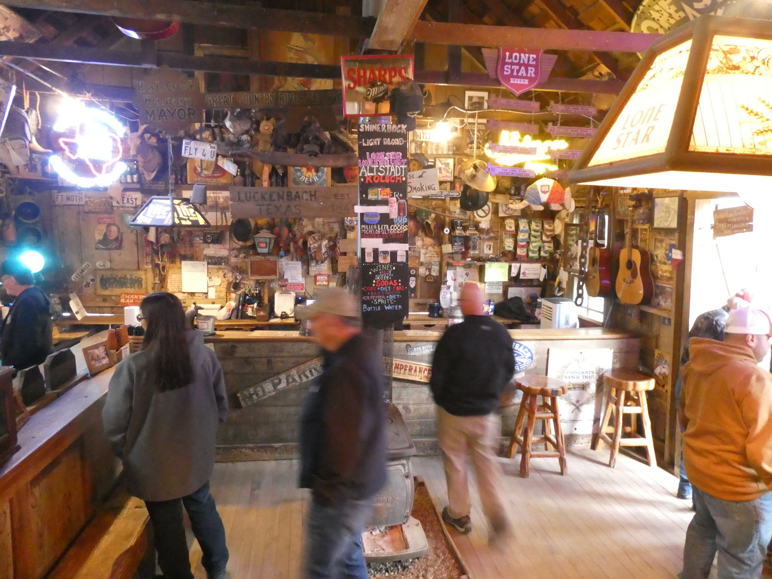 Sur le chemin de notre hôtel à Fredericksburg, sur les conseils de deux Texans rencontrés pendant la balade, nous nous arrêtons à Luckenbach. On est dans le Texas profond, c’est visiblement un lieu pour faire des grosses fêtes, et pas seulement pour les touristes. Vous aurez compris qu’il y a eu dans la région de l’immigration allemande.